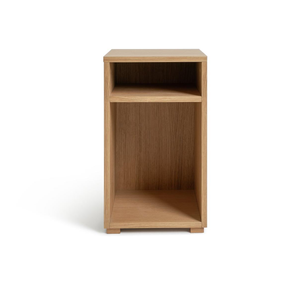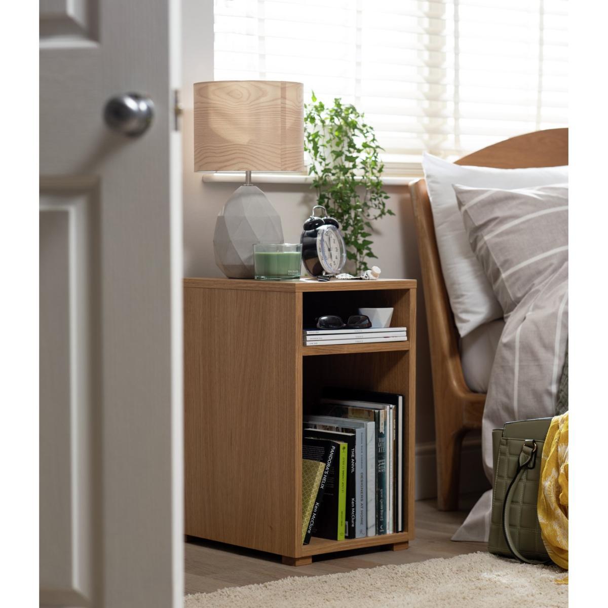 Simple, stylish, space saver. Crafted from beautiful solid oak, our Beck bedside table is pure scandi. With one fixed shelf, it keeps books, mobiles and magazines tidy and within easy reach. And there's space on top to pop a lamp and a plant too. It still looks clean and fresh. Slim enough to fit in the narrowest of spaces. So room for one each side of a double bed, even in small rooms. Perfect.