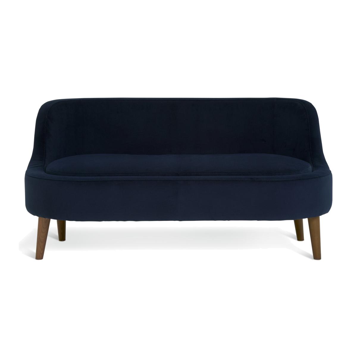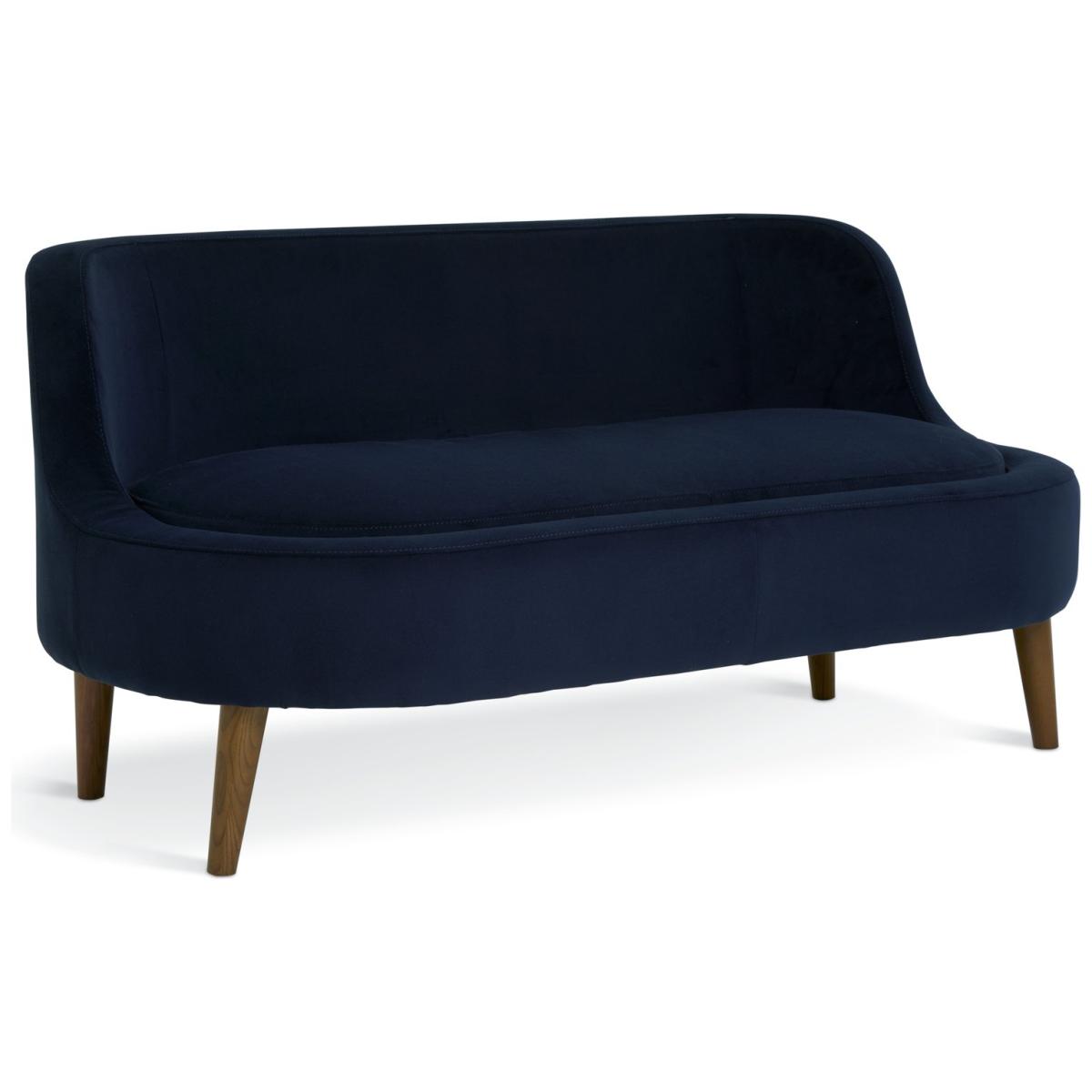 Slip into our aesthetically pleasing, laid-back low sofa. Beckett's compact silhouette is both contemporary and comfortable. Upholstered in navy fabric, the padded curves and soft central seat cushion display confident clean lines. While gently tapered wooden legs in a warm walnut stain make an attractive detail. And because it's a sofa in a box, it's easy to squeeze through narrow doorways and set up just where you like. Part of the Beckett collection. Material: Made from 100% polyester. Wooden feet - walnut. Medium firm seat cushions. Fixed seats with foam filling. Removable cushion(s) with fibre filling. Free fabric swatch available on this line. Dimensions: Size H72, W148, D80cm. Floor to seat height: 46cm. Depth of seat: 67cm. Height of seat back: 53cm. Width of seating area between arms: 148cm. Weight: 19kg. Packaged dimensions: Package size H40.5, W150, D82cm. General information: FSC certified meaning the materials used for this product are responsibly sourced. Wipe clean. Plump cushions regularly to maintain shape. Self-assembly - just add feet. Maximum individual user weight: 110kg. Manufacturer's 2 year guarantee.