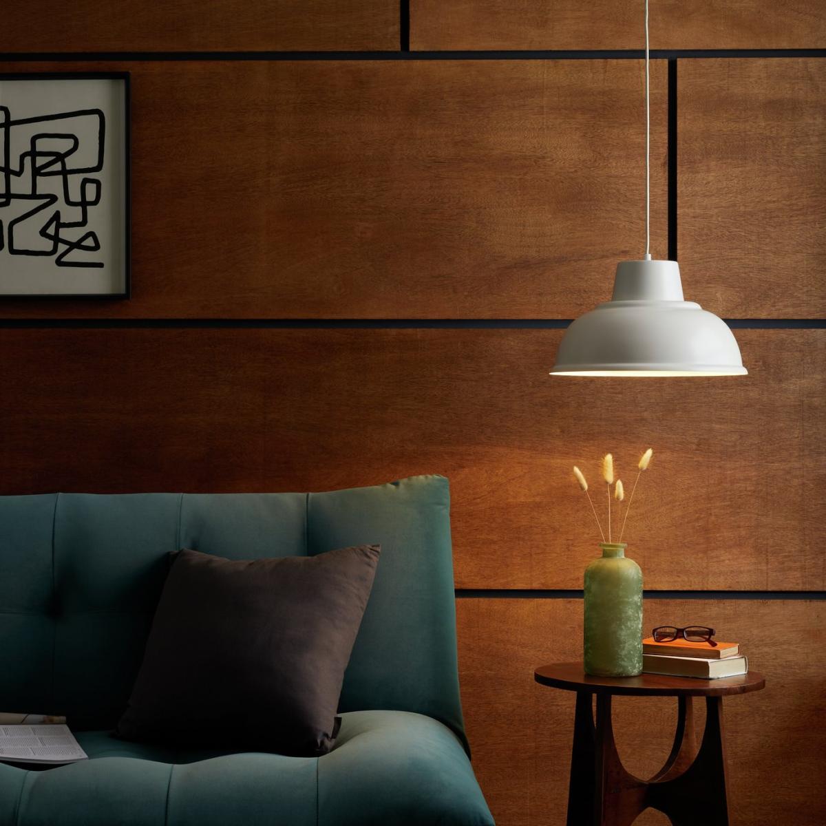 Light up your retro credentials. This classic mid-century inspired pendant light looks as cool now as it ever did. Cream metal has a freshness that sits well in any surroundings. A desirable design for decades to come. The adjustable drop lets you style it just the way you like. Dimensions: Size H120, , Diameter 38cm. Adjustable drop. 80 - 120cm drop. Bulb Information: Bulbs required 1 x globe E27 edison screw LED (not included). Recommended maximum wattage: 10 watts. Can not be used with a dimmer switch. LED bulb only. General Information: Metal. IP rating 20. Weight: 1.3kg. Minimal assembly. Product is hard-wired into electrics. This lighting product is a class 2 fitting. We are excited to be welcoming some of our favourite HOME products into the Habitat range. Your product may arrive in Habitat or HOME packaging. Manufacturer's 2 year guarantee.