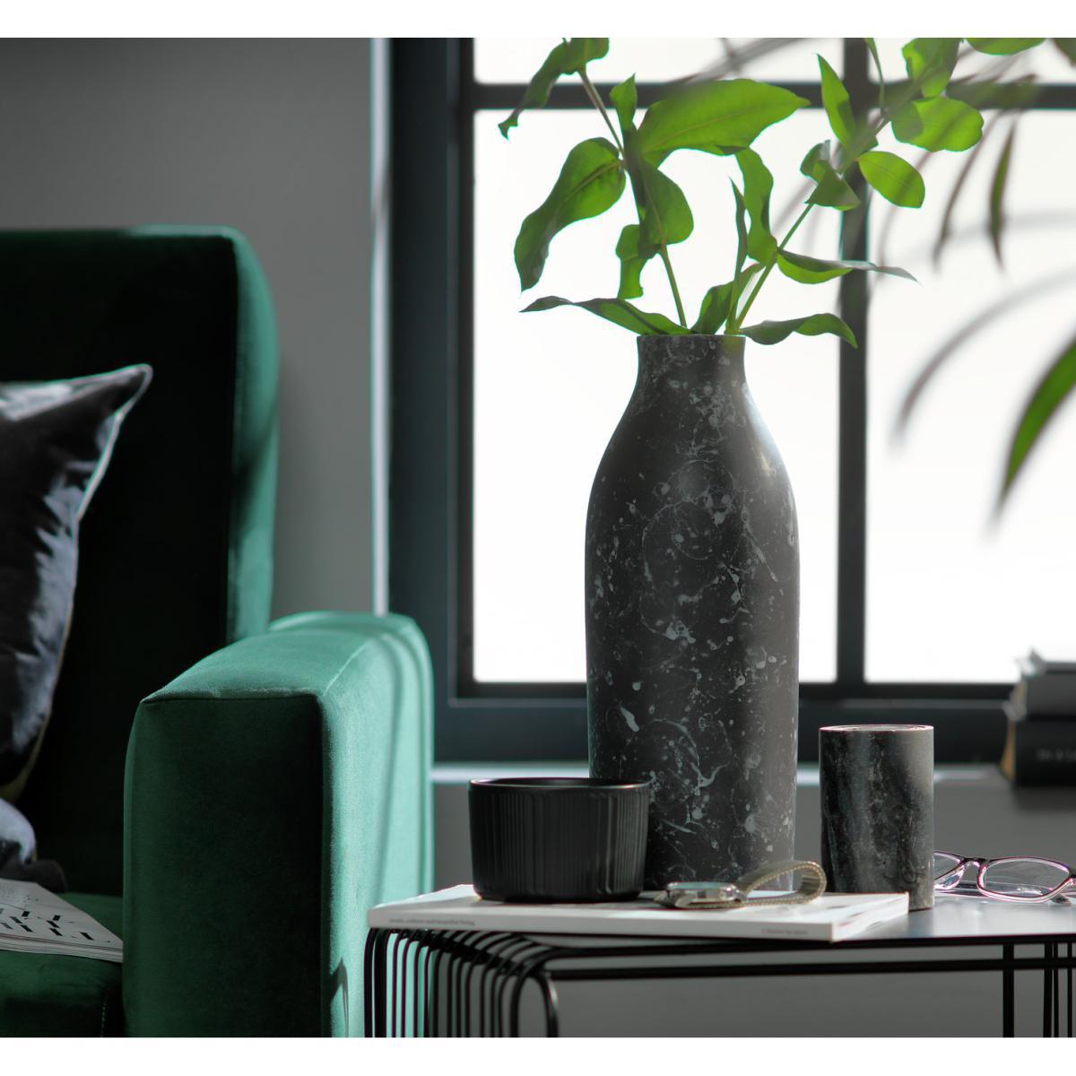 Keep it sleek. Our black marble vase is a stylish spot for all your favourite flowers. Bring decorative drama to your kitchen, console or side table with its speckled matte design. Made with natural materials, it's organic with an edge. Looks great on its own or filled with a beautiful bouquet. A cool contemporary centrepiece.