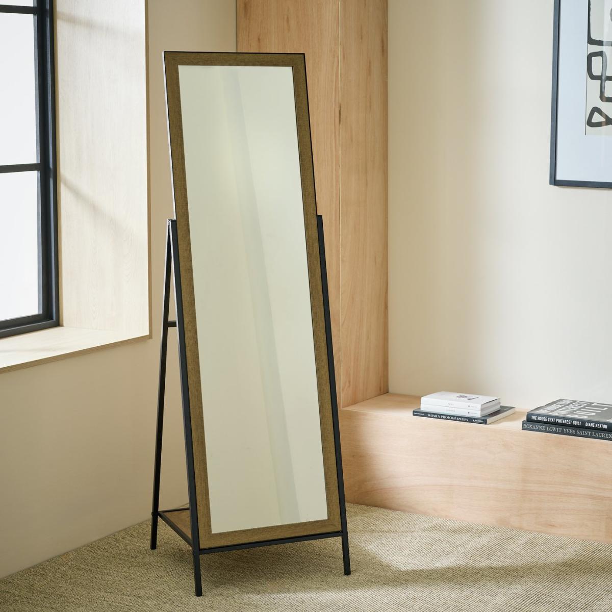 Check you out. From top to toe our floor length mirror's looking good. The grained wooden frame is edged in black metal for a stylised finish. Freestanding and fuss free. It's a simple way to lighten and brighten a room, as well as that 'good to go' confidence. Size H147, W45, D47cm. Frame material: Metal. Hanging fixture type:Freestanding. Freestanding mirror. Supporting foot. Total weight: 10.2kg. Fixtures and fittings included. Self-assembly. General information: By choosing FSC certified products, you are supporting responsible management of the world's forests.