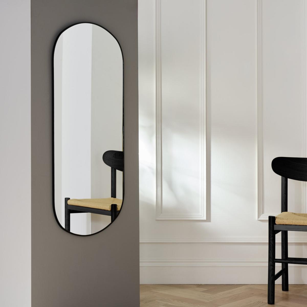 Soft edges. Strong presence. Framed in slim black aluminium, this pill shaped mirror balances gentle curves with clean lines. The look is modern, approachable and totally versatile. Hang it in the hallway, bedroom or dressing space to open up the room and quietly reflect your style. Size H100, W60, D1.3cm. Frame material: Metal. Hanging fixture type: Keyhole. Wall mounted mirror. Total weight: 7.01kg. Fully assembled. Distance between fixings 35.9cm. General information: By choosing FSC certified products, you are supporting responsible management of the world's forests.