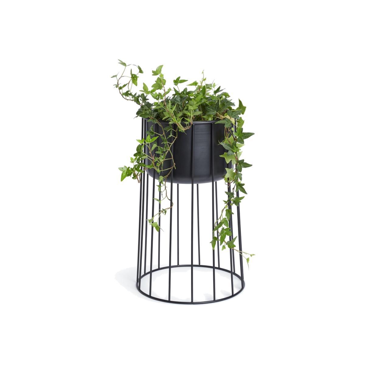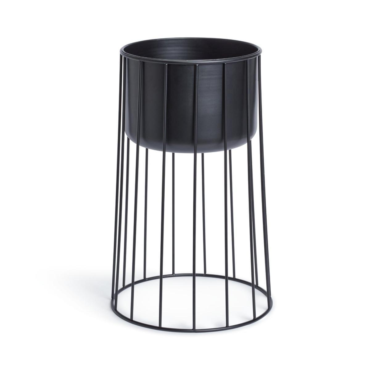 Looking for a new plant perch? This black metal plant pot has a smooth industrial feel. Set on a frame of spindle legs it'll elevate your favourite foliage. Or why not fake it?. Pop in a fab faux trailing plant for bang on botanical beauty. It's a simple instant way to bring a lush look to your space. And it stacks away neatly if you need it too. A fine design.