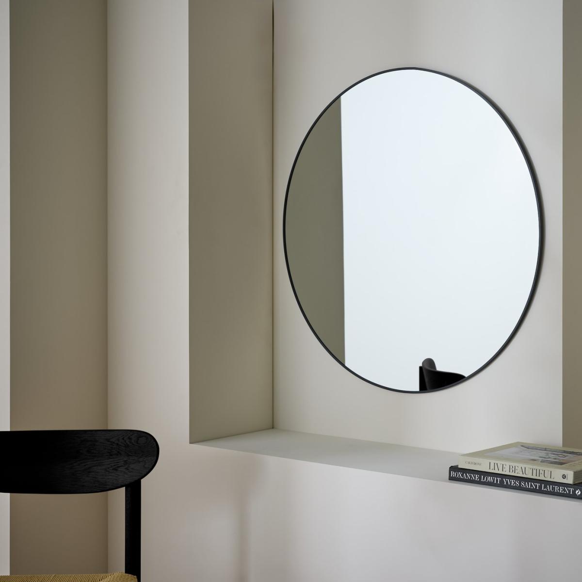 Well rounded. In every sense. This perfectly circular 80x80 mirror softens a space and enhances a wall. In a slim black aluminium frame, it's ideal in a hallway for a last-minute-leaving glance, or in the bedroom or bathroom where good lighting (and good mirrors) matter. Simple, sculptural and always in style. Size H80, W80, D1cm Diameter 80cm. Frame material: Metal. Hanging fixture type: Keyhole. Wall mounted mirror. Total weight: 7kg. Fully assembled. General information: By choosing FSC certified products, you are supporting responsible management of the world's forests.