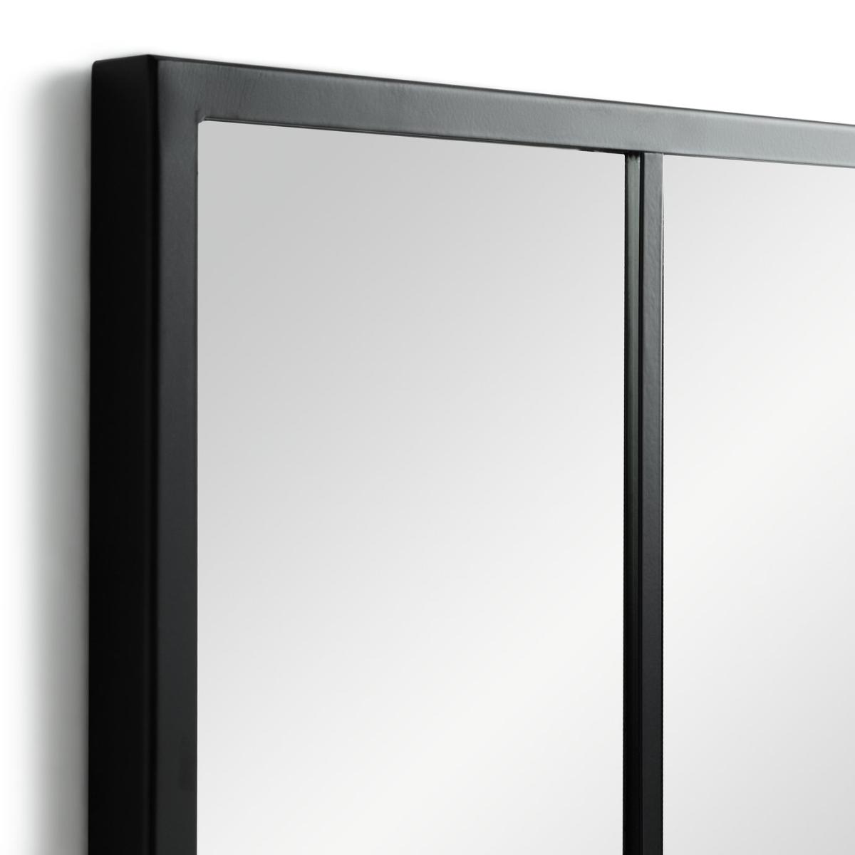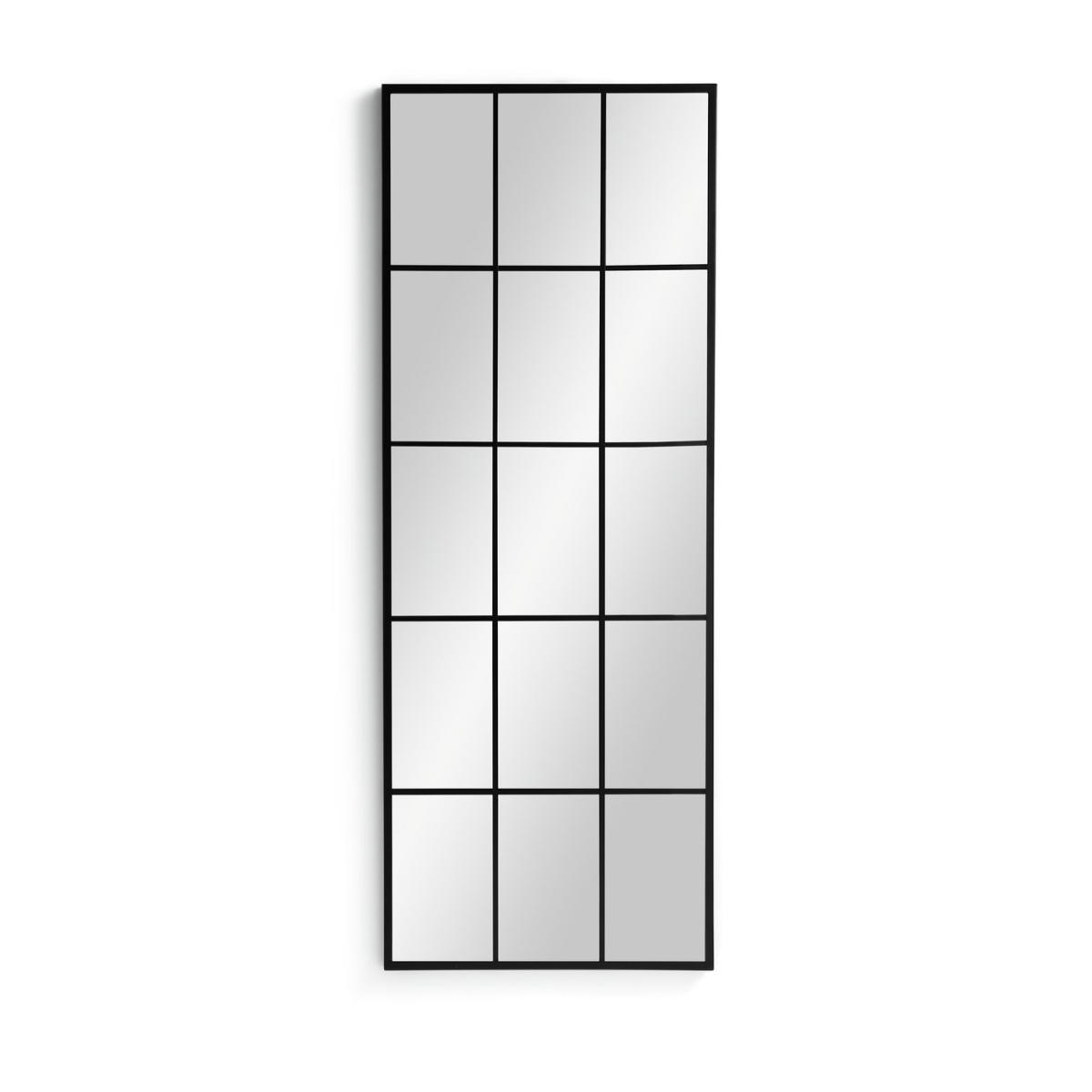 If you've got it, flaunt it. Our fabulous, full-length windowpane mirror is an on-trend statement piece that loves to show off. The black metal frame breaks the mirror up into 15 sections, creating a window effect. Mount in your lounge, bedroom or hallway to give an illusion of space and reflective light. Or for an industrial loft look, lean it up against the wall. The sturdy frame is built to stand the test of time. A shatter-proof membrane covers the back panel, so you can be sure it's safe as can be. Size H140, W60, D2.5cm. Magnifying side with one-to-one x magnification. Frame material: Metal. Hanging fixture type: D-Ring. Wall mounted mirror. Freestanding mirror. Can be hung horizontally or vertically. Total weight: 11.9kg. Self-assembly. Distance between fixings 38cm.