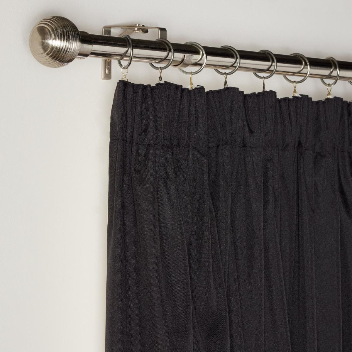 Black is always in fashion. Long, elegant and quietly stylish, our blackout curtains are made for modern living. They have the look and feel of real linen, yet they're machine washable. How handy is that? The pencil pleat heading means they fall into neat folds from a pole or track. And when you want to block out unwanted light, you couldn't hang out with a more practical pair. Features Black plain design. Made from 100% polyester. Blackout. Dimensions Size 117cm (46 inches) wide by 137cm (54 inches) drop. Width refers to one curtain panel before hanging. Contains one pair of curtains (2 curtain panels). Dimensions provided include header tape. / 7.62cm. General information Curtain hooks/ rings included. Suitable for curtain poles. Curtain pole not included. Does not include tie backs. Machine washable at 40 C. Suitable for tumble drying. General Information: Manufacturer's 1 year guarantee.