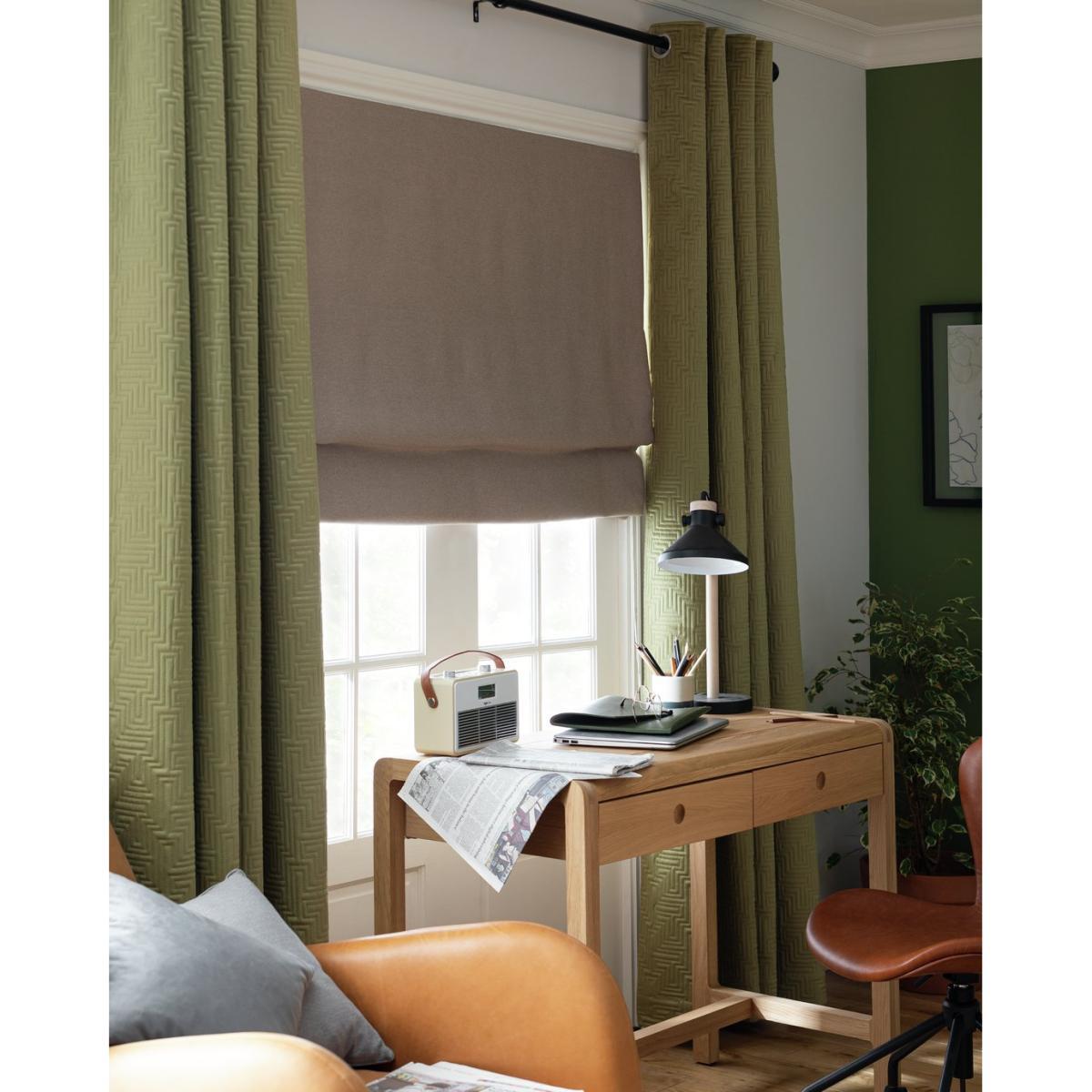 Blinding style for those dark days. Our handsome Roman blackout blind is also downright practical. On one side, this taupe fabric blind brings some sophisticated styling to your space. Behind the scenes the thick fawn lining blocks the light for early nights and box set binging days. Whoo-hoo! Fix inside or outside your window recess, your choice. Comes in various sizes to give you that made to measure look. Very fitting. Good news, it's kid friendly too. This luxury blind has a child safety P clip. In other words, little fingers won't get caught up in the cord. For more ways to wow your windows, look through our full collection of curtains and blinds. Features:Blackout blind. Taupe Plain Pattern. Material: fabric. Provides complete blackout. Dimensions: Size W120, drop 137cm / W47, drop 54in. General information:Tested and safe to the 2014 blind safety standards BS EN 13120. Fits inside or outside window recess or to wall. Suitable for kitchens and bathrooms. This blind comes with a child safety P clip. Includes fixtures; fittings and instructions. Wipe clean. Manufacturer's 1 year guarantee.