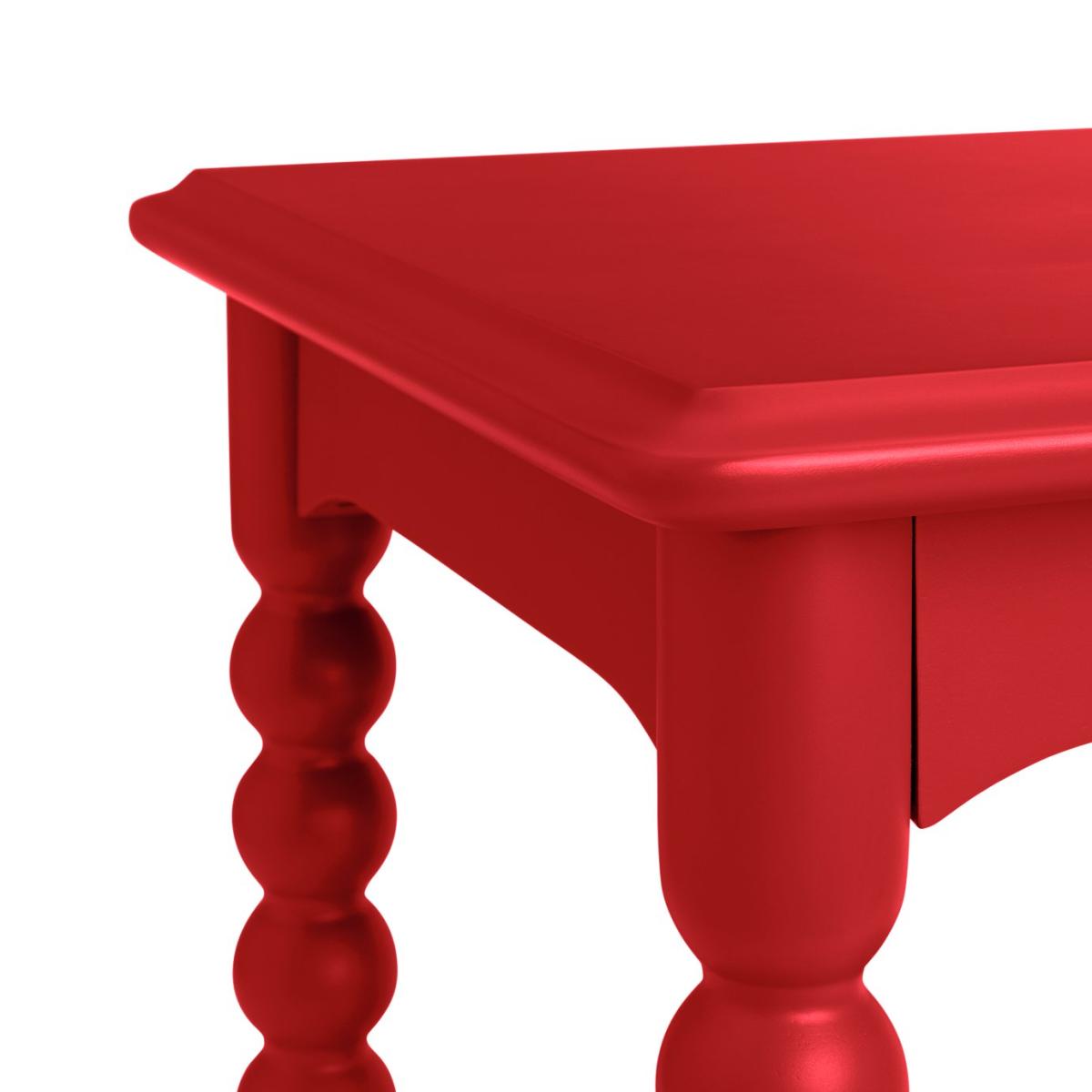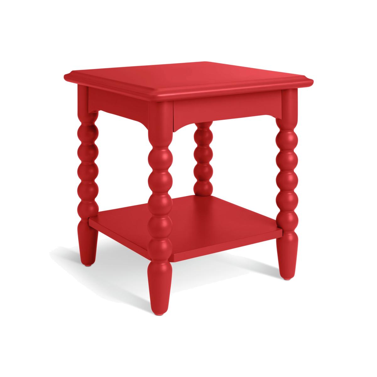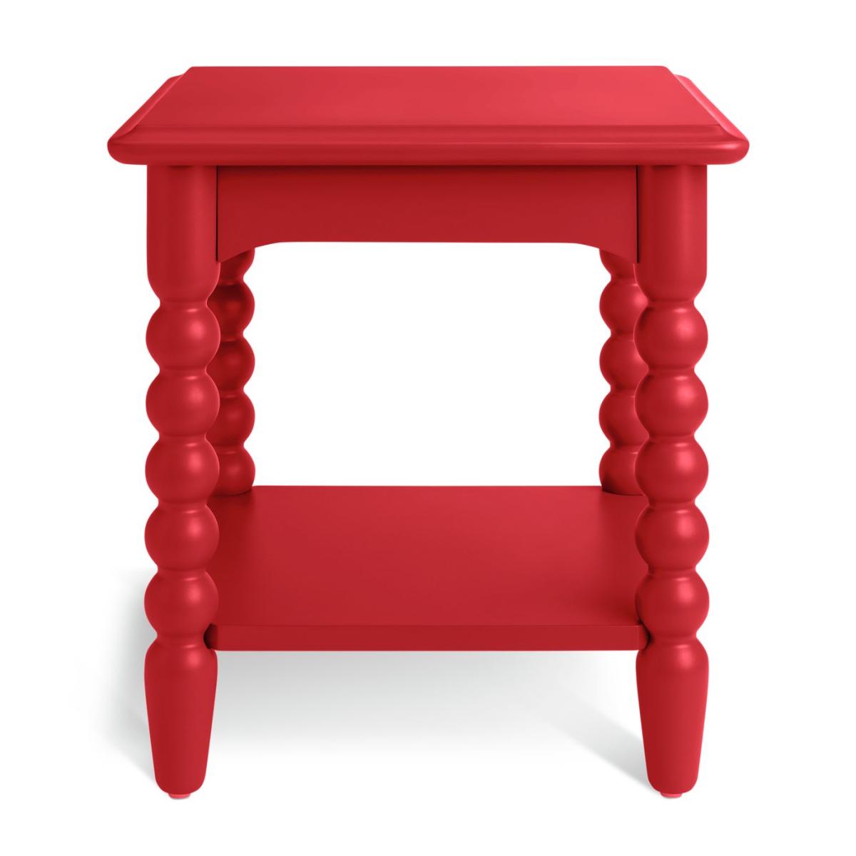 A respectful retro nod to vintage lathe turned furniture. The bobbin detail on the legs of this bedside table is stunningly effective. The bold red finish gives it a contemporary edge that makes this piece comfortably at home with modern or traditional decor. Part of the Blaire collection. Made of solid wood and MDF. Self-assembly - 1 person recommended. Dimensions: Size H45.2, W42.5, D42.5cm. Weight 9.5kg. General information: FSC certified meaning the materials used for this product are responsibly sourced. Manufacturer's 2 year guarantee.