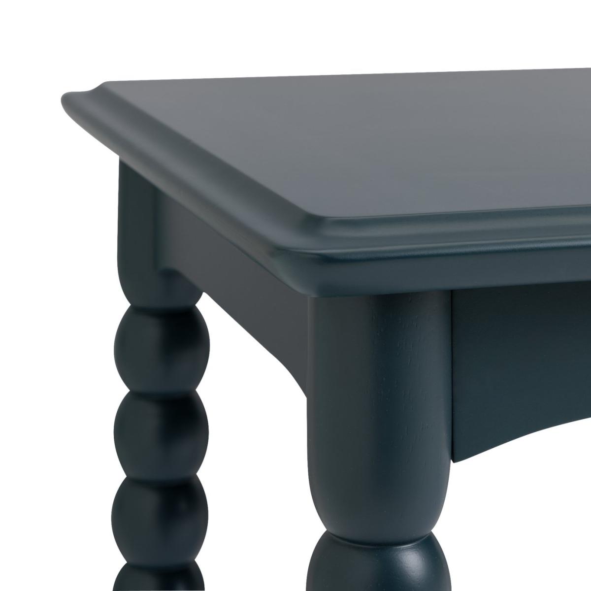 Bang on trend, vintage lathe style turned furniture. The bobbin detail on the legs of this circular coffee table is stunningly effective. The navy blue finish gives it a contemporary edge that makes this piece comfortably at home with modern or traditional decor. Part of the Blaire Bobbin collection. Size H 45.2, W 90, D 45cm. Made from solid wood and MDF. Weight 13kg. Fully assembled. Maximum load weight 100kg. Package Dimensions: Package 1 dimensions: H15.5, W53.5, D98.5cm. Package 1 weight: 17kg. General information: Manufacturer's 2 year guarantee. FSC certified meaning the materials used for this product are responsibly sourced.
