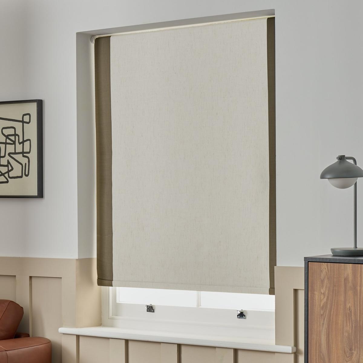 Lights out, night, night. Throw a comforting blanket of darkness into bedrooms with this stylish off white and grey block edged bedroom blackout roller blind. Easy to fit and cut to size, it's the fashionable way to block out unwanted light from lamp posts, passing cars or early morning sun. Made with a wipe clean fabric this blind is also brilliant for bathrooms and kitchens. Features: Blackout blind. Material: fabric. POM, PE, Metal chain mechanism. Bottom rail material: Aluminium & POM. Provides complete blackout. Dimensions: Size W90cm, drop 160cm / W35.4in, drop 62.9in (including fittings). Size W87.5cm, drop 160cm / W34.5in, drop 62.9in (excluding fittings). Easily trimmed to size. Mechanism can be fitted to either side. General information: Tested and safe to the 2014 blind safety standards BS EN 13120. Fits inside or outside window recess or to wall. Suitable for kitchens and bathrooms. This blind comes with a child safety P clip. Includes fixtures; fittings and instructions. Wipe clean. Manufacturer's 1 year guarantee.