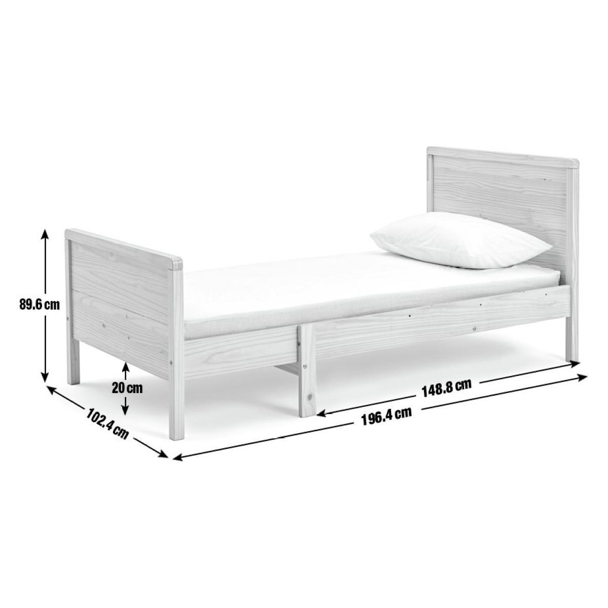 Ready, steady, grow. Our clever extendable bed frame in pine takes your youngster from toddler to teenager. When their toes touch the end, just pull out, secure and add a bigger mattress. Easy. This sturdy frame is quick to assemble. Wooden slats make for a super comfy night's sleep. Made from FSC wood, it's sustainably sourced too. Sleep tight. Zzzzz.
