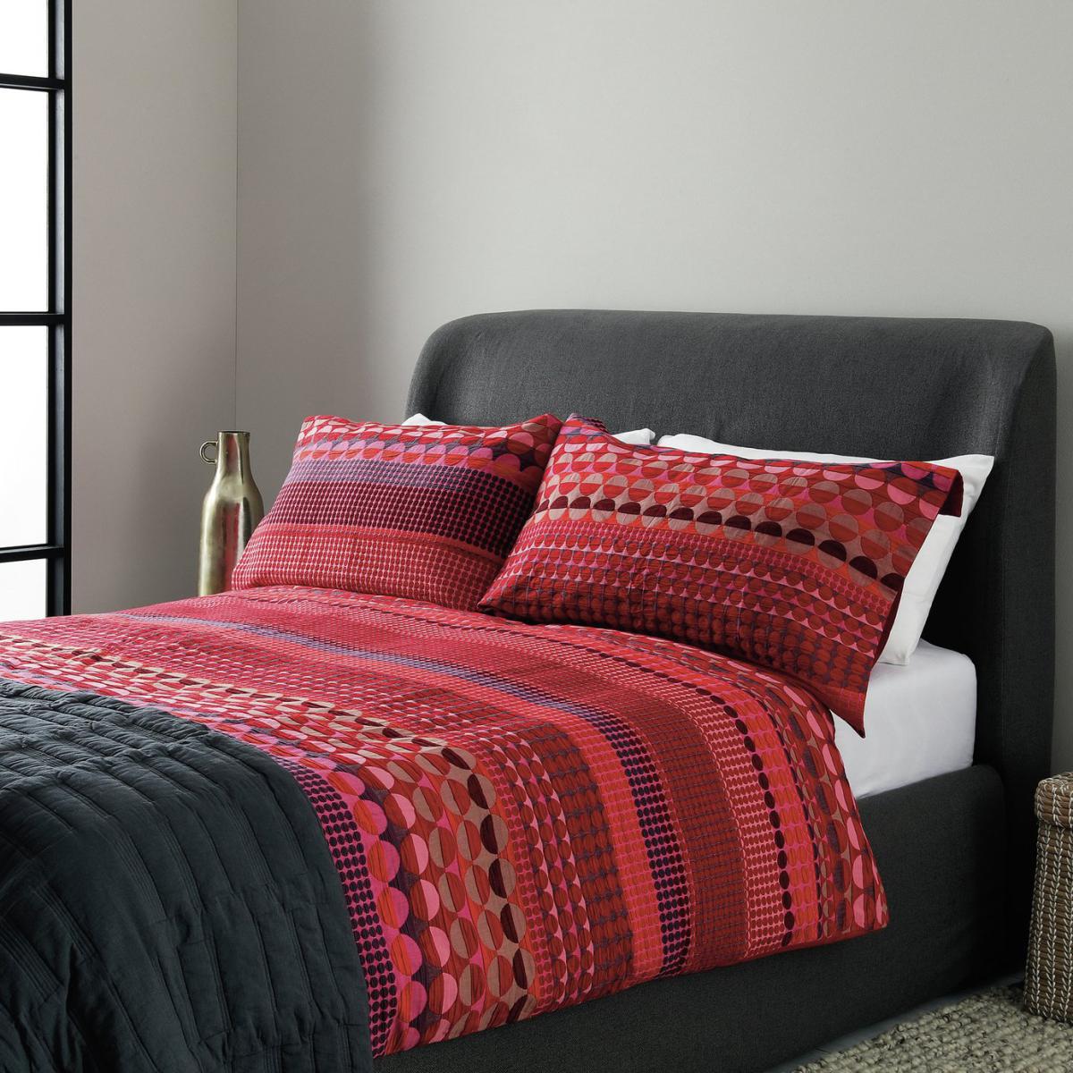 The luxurious Bloomsbury red jacquard super king duvet cover set has an intricate pattern of spots in saturated tonal shades and a soft, textured feel. Bloomsbury was designed exclusively for Habitat by Margo Selby and the bed linen is woven in Portugal using a double-layered jacquard technique. The Bloomsbury range includes duvet sets and pillowcases, available in a choice of sizes and colours, with a 200 thread count cotton percale reverse for added comfort.