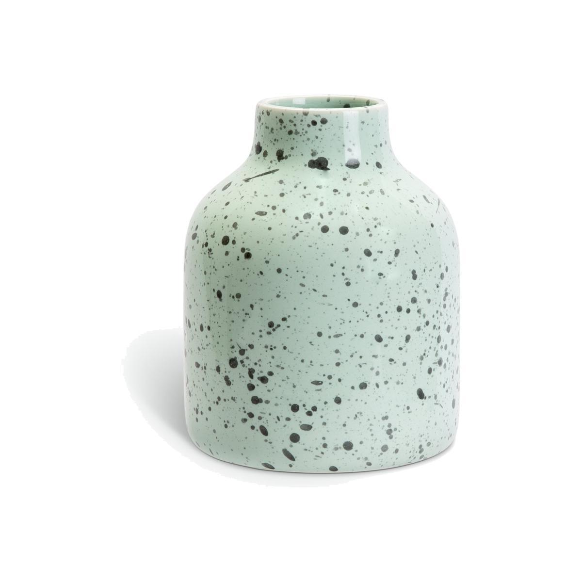 Spot on. Our earthenware splattered dot vase is the perfect place for fresh or dried flowers. Pop on a windowsill, sideboard or kitchen table for a natural, artsy look. Pretty as a picture, this patterned planter puts on a beautiful display. Finished with a subtle glaze and pleasing curves, it'll catch the light just right. Fabulous. Size H15.8, W12, D12cm. Diameter 12cm.