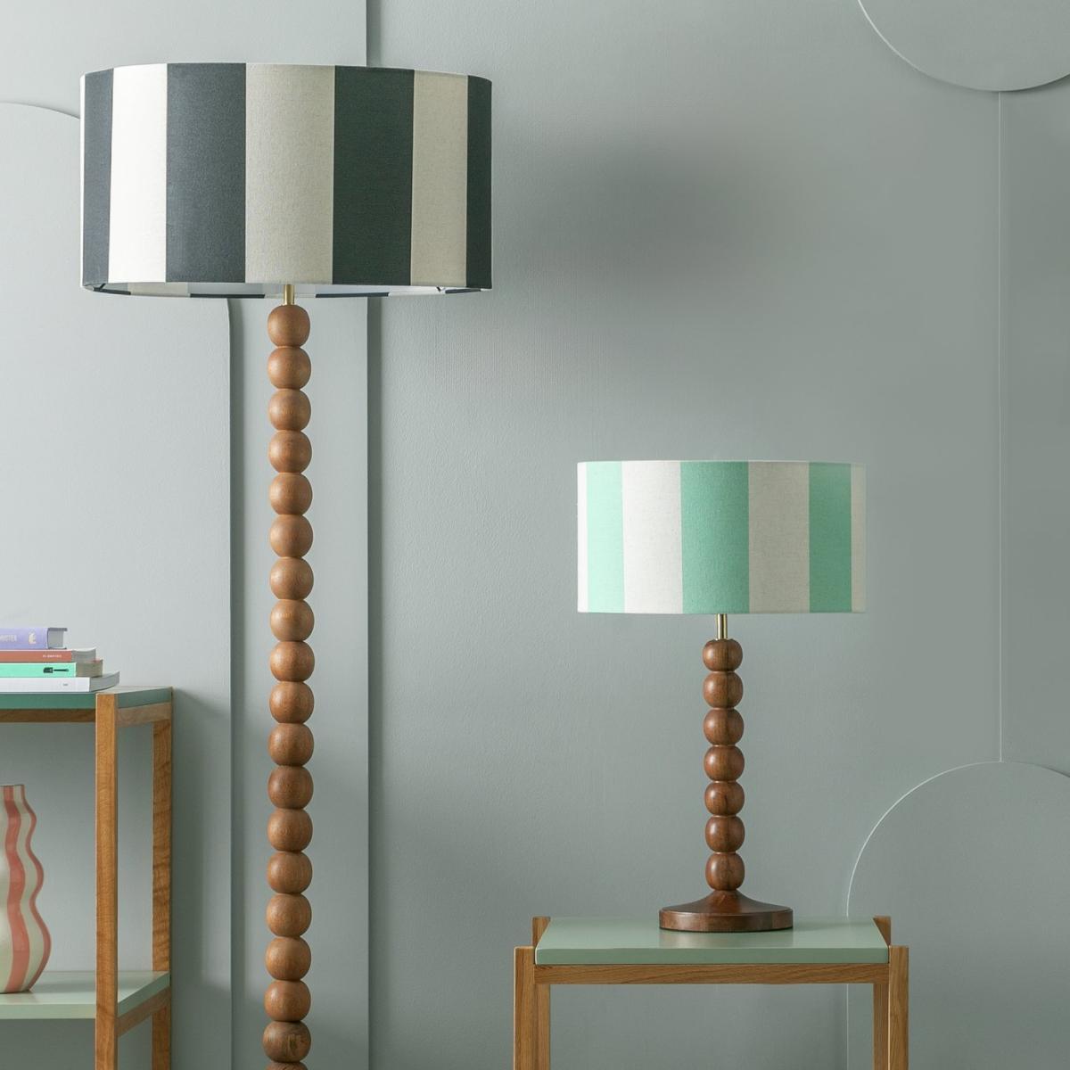 Creating your own lighting look? Start with our bobbin table lamp base. Made from solid mango wood with a rich walnut finish and brass detailing. Comes with an inline switch for easy on, easy off. We recommend a 45 - 49cm shade with this base. Dimensions: Diameter of base 16cm. Cord length 2.5m. Bulb Information: Bulbs required 1 x E27 edison screw (not included). Recommended maximum wattage: 9 watts. LED bulb only. General Information: Base colour: walnut. Base material: wood. In-line switch. This lighting product is a class 2 fitting. Bobbin. Manufacturer's 1 year guarantee. FSC certified meaning the materials used for this product are responsibly sourced.