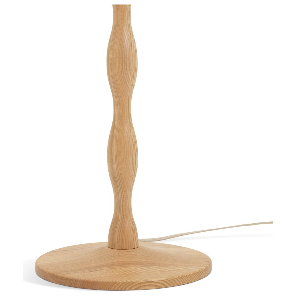 Cut a dash with ash. The first thing you notice about this floor lamp is the smooth undulating wooden stand. Carved from Ash It displays the natural beauty of the grain. Topped with a cream shade it has an overall freshness that'll light up any space. Turning this lamp on or off is toe tappingly easy with the inline foot switch. Dimensions: Size H167, Diameter 40cm. Diameter of base 28cm. Shade size H25, D40cm. Cord length 2m. Bulb Information: Bulb required 1 x classic E27 edison screw LED (not included). 15 watts. General Information: Shade material: polyester. Base material: wood. Foot switch. IP 20 - not suitable for bathroom use. Self-assembly. Product is mains powered plug in. This lighting product is a class 2 fitting. Weight 2.65kg. Bobbin. Manufacturer's 1 year guarantee. FSC certified meaning the materials used for this product are responsibly sourced.