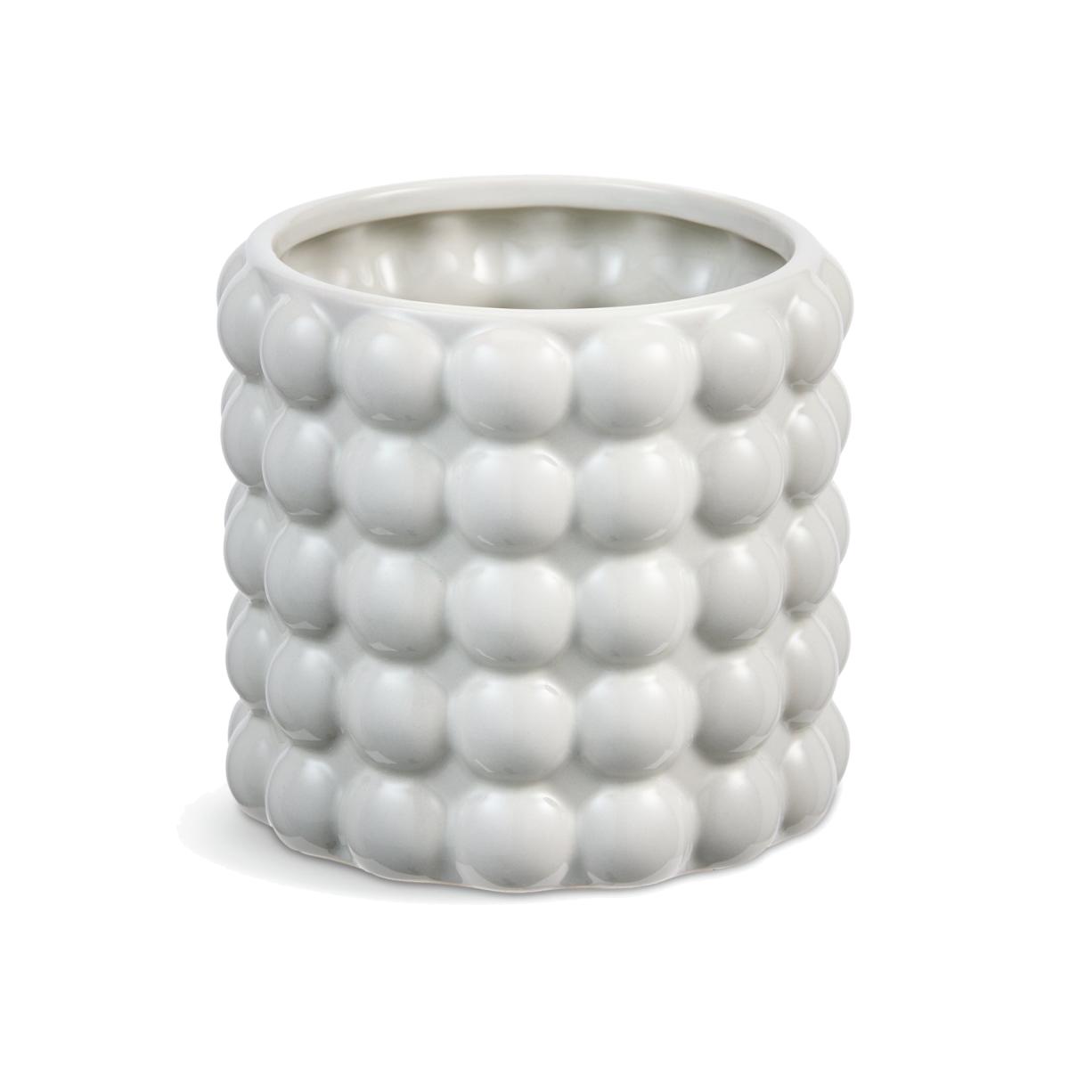 Big, bold and beautifully bobbled. This large light grey glazed ceramic planter brings texture and scale to sizeable plants. Spot it in a hallway or next to the sofa for an instant decor lift. Size H15.5, Diameter 16.5cm.