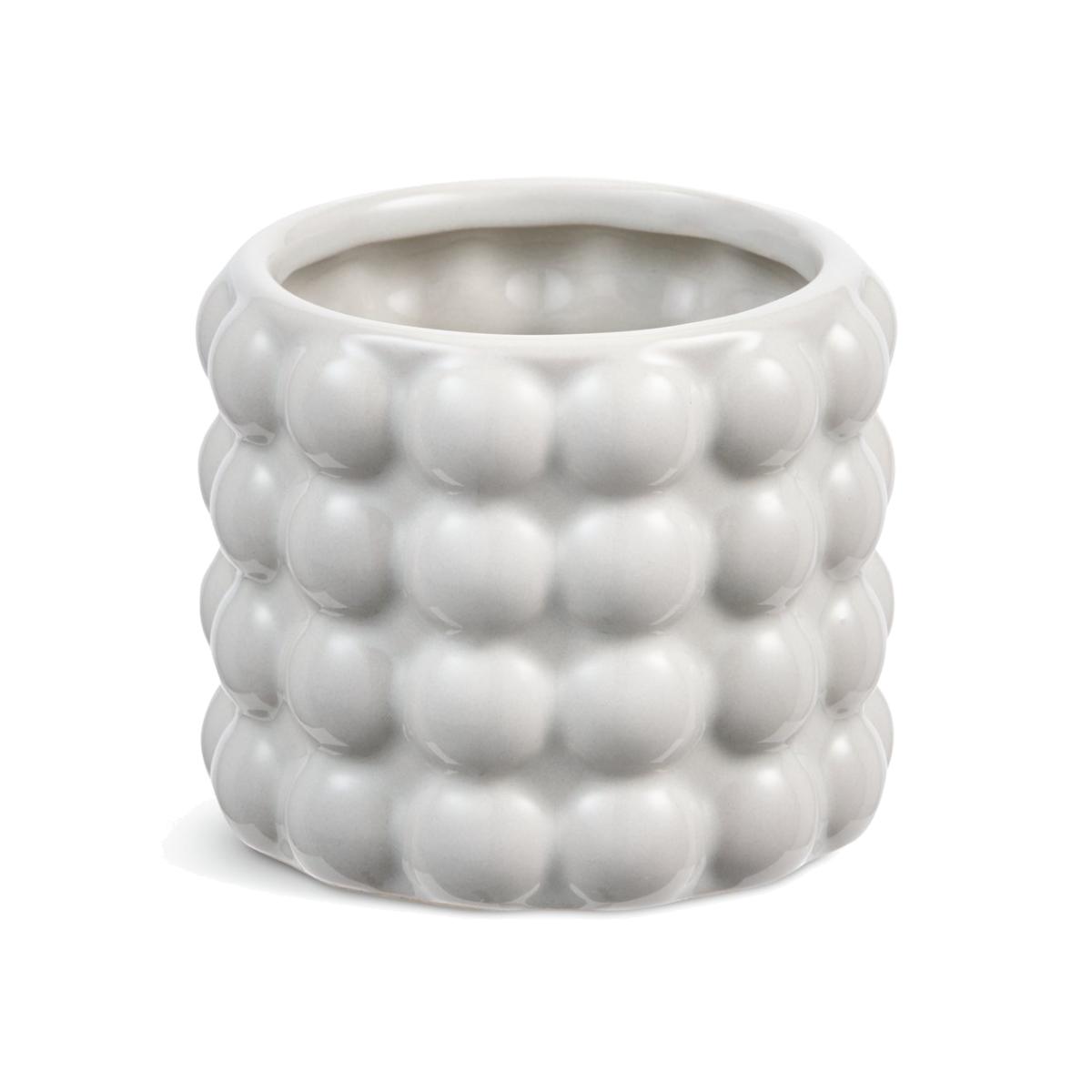Pop of pattern. This small light grey ceramic planter is covered in playful bobbles and finished with a soft sheen. A fun way to show off little succulents or cacti. Looks great on shelves, sills or bedside tables. Size H9.3, Diameter 10.5cm.