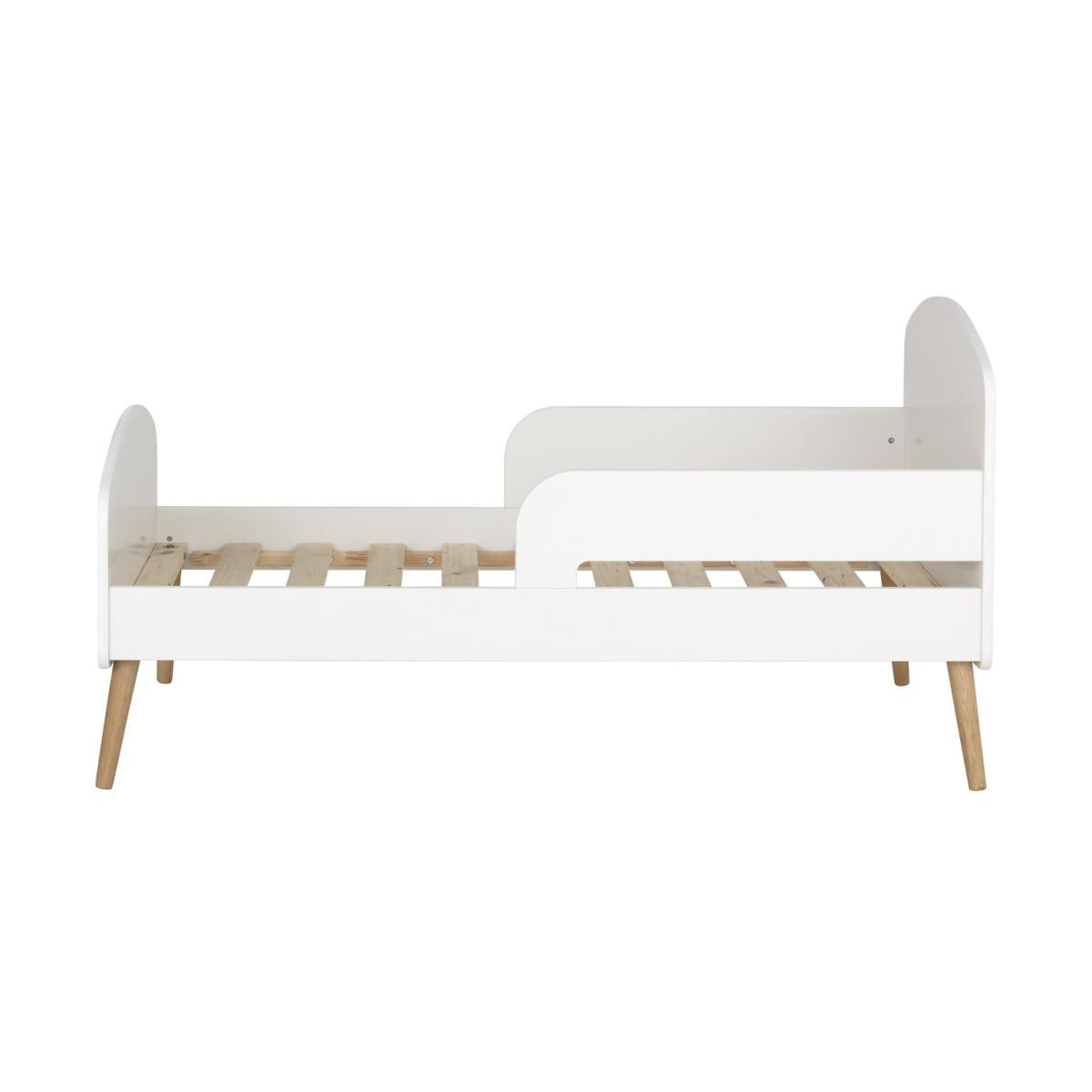 It's a big deal moving up to your first big bed, so why not do it in style? Your little one will love this fun, fresh and playful Bodie toddler bed. With pine legs, a shaped head and foot board, and extra long guard rails down the sides, it's got all the cosiness they need to feel safe and secure. It's close enough to the floor so that they can climb in themselves, but there's still space underneath to store toys and bits and bobs. Or keep it clear for a Scandi uncluttered look.