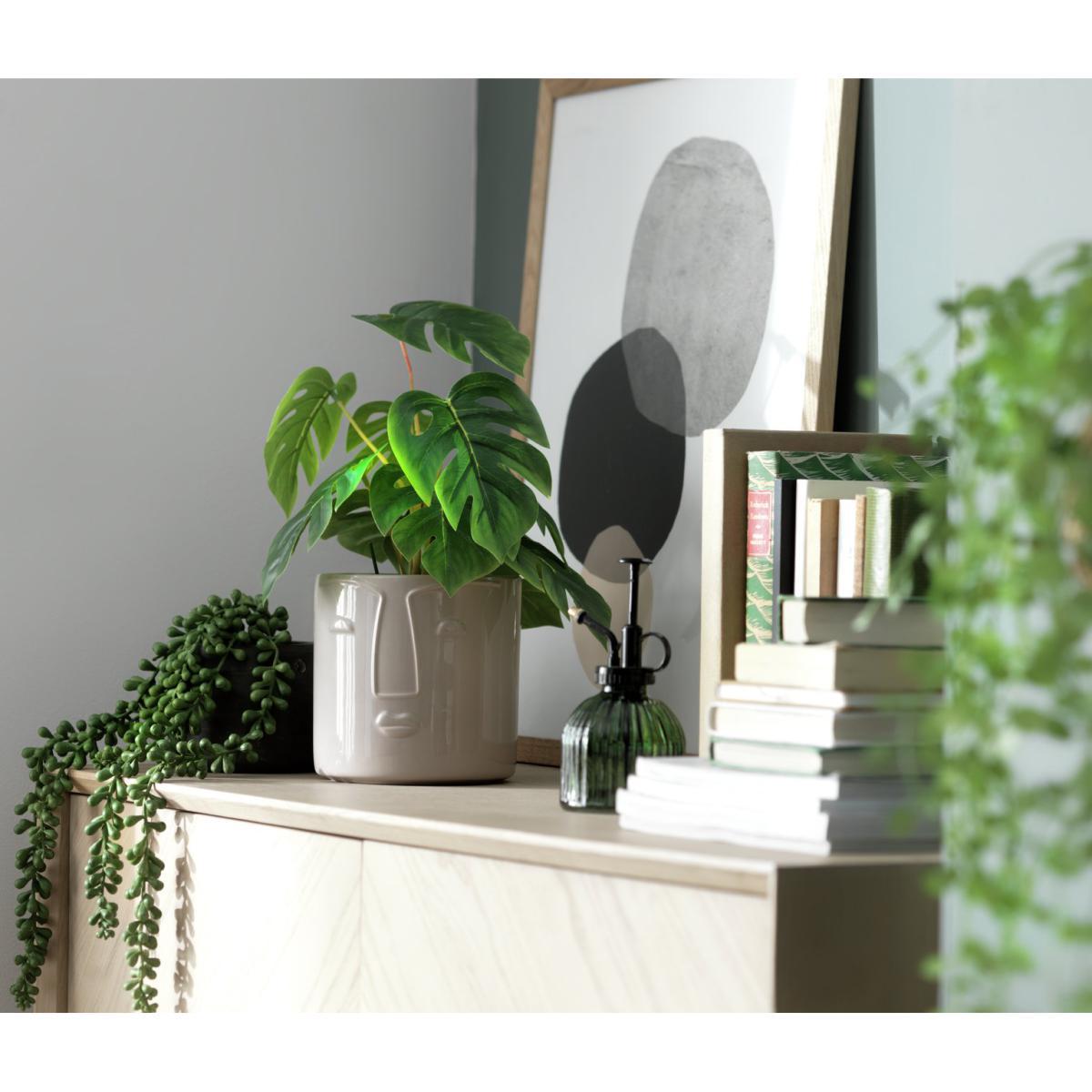 This faux face plant pot is a fantastic choice for adding a touch of personality and greenery without the hassle of maintenance. I love its neutral cream tone, which makes it versatile across various interiors, especially boho, Scandinavian, or modern eclectic styles. It works well as a statement piece on side tables, shelves, or entryway consoles. For styling tips, pair it with textured planters or mixed-height plants to create visual interest, and consider placing it near natural light sources to enhance its realistic appeal. Ideal for spaces where real plants might struggle to thrive, this piece brings a lively and stylish element to any room.