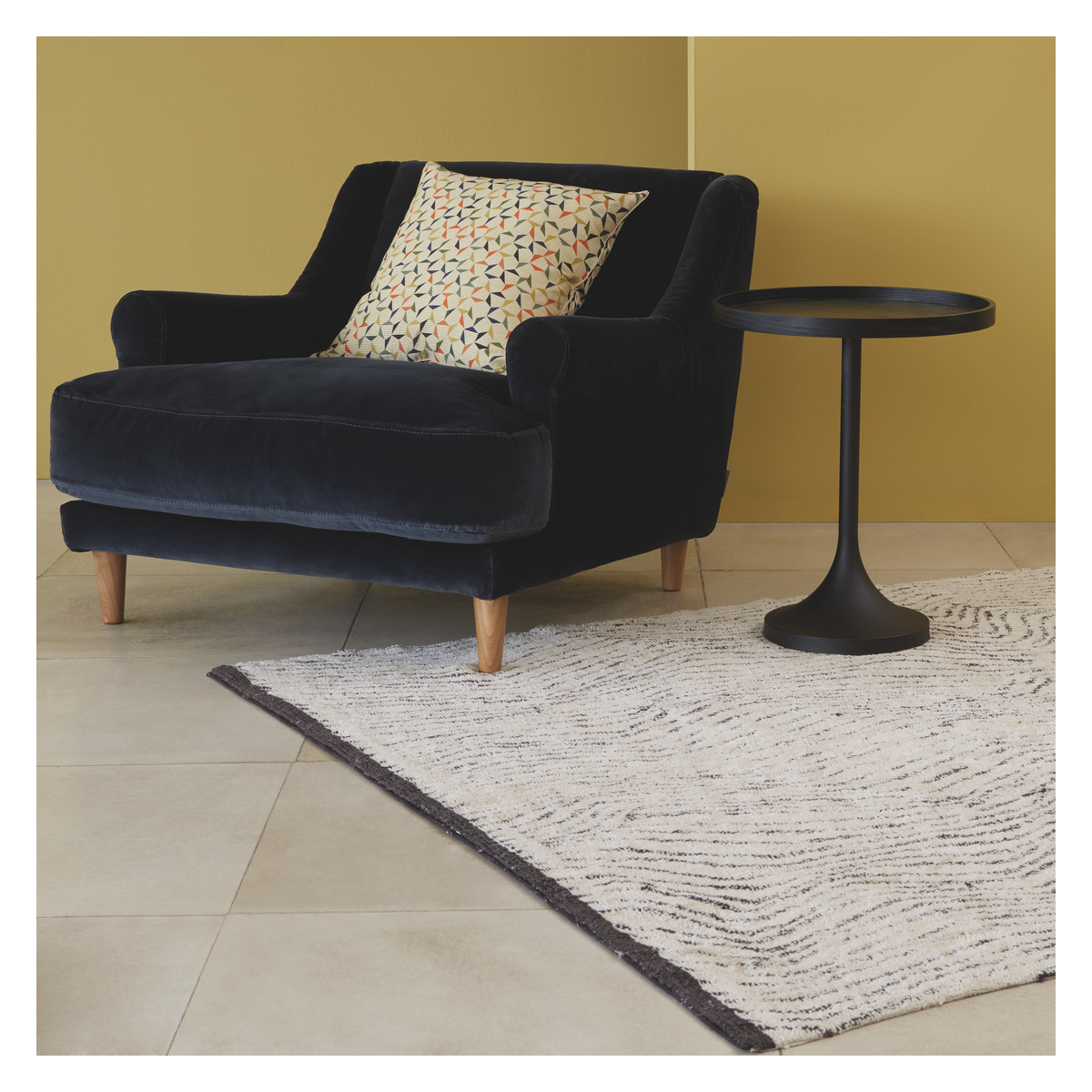 This side table is a stylish choice for contemporary and minimalist interiors, thanks to its sleek black finish and simple yet sculptural silhouette. I love how it combines modern elegance with practicality-it’s perfect next to a sofa or armchair, providing functional surface space without overwhelming the room. The dark-stained oak top adds warmth and texture, making it versatile enough to complement a variety of colour schemes, from neutral tones to bold accents. For styling tips, consider placing a statement lamp or a small plant atop, and pairing it with other black accents for a cohesive look. Its understated form makes it easy to incorporate into both casual living spaces and more polished, curated interiors.