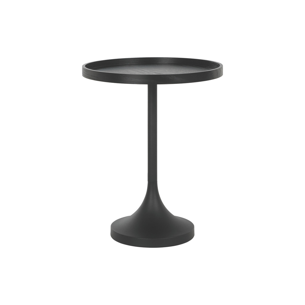 The elegant Bonny black side table has a dark-stained oak veneer tray top and a feature trumpet base made from powder-coated metal. Exclusive to Habitat, the versatile Bonny works equally well as a bedside table and is also available with a natural oak veneered top for visual contrast.