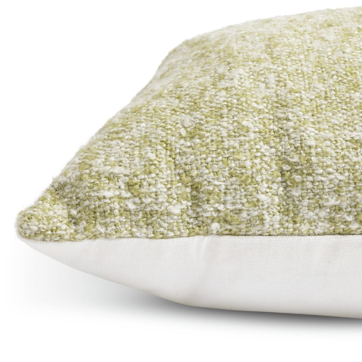 Add a soothing dose of green to your space with our handwoven boucle cushion. Softly textured and gorgeously plump it's a comforting cuddle. Fully sewn and stuffed cushion. Zip fastening. Cover 42% Acrylic, 58% Cotton and polyester. Filling 100% Recycled Polyester. Size L50, W50cm. This cover is spot clean only.