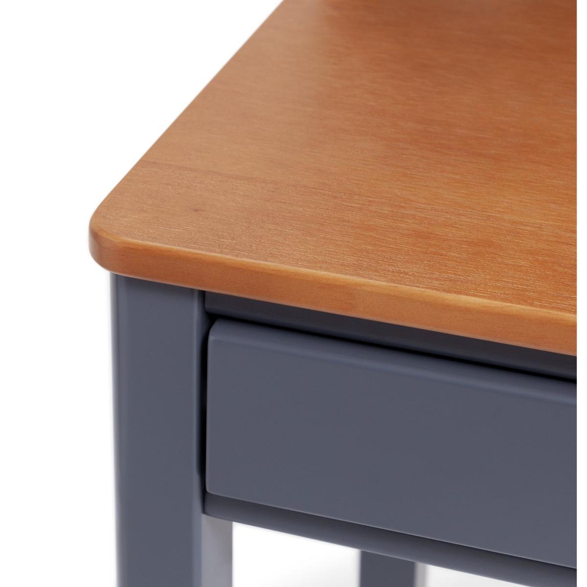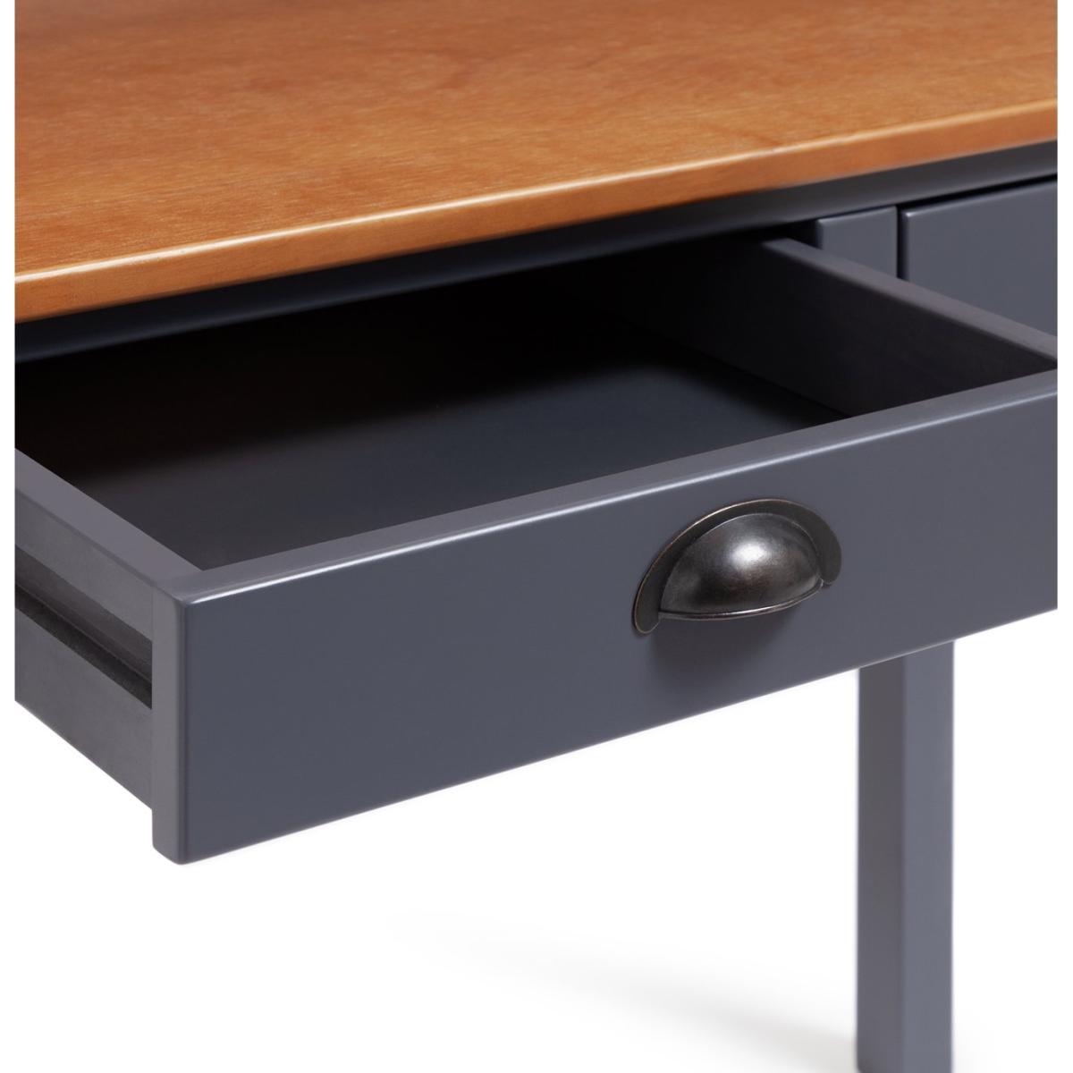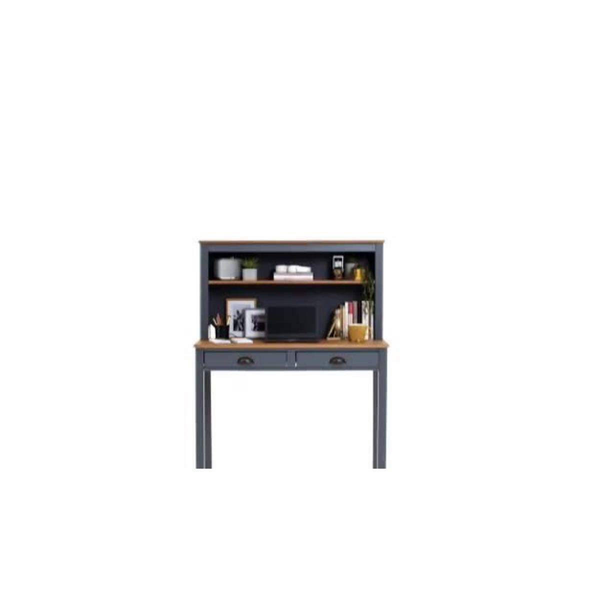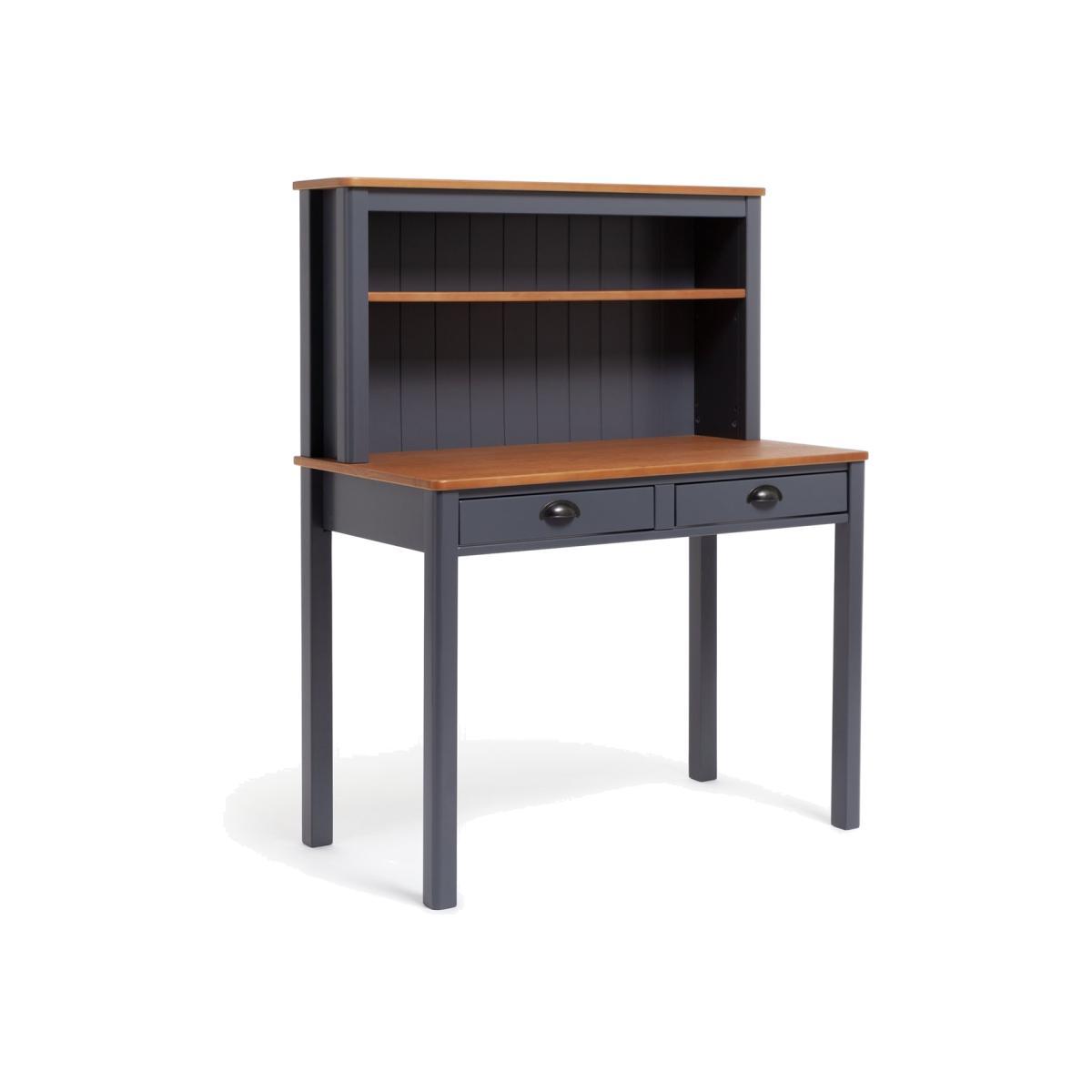Get homely with your home office. Our Bournemouth desk has a comfy country feel. Made from solid pine it's traditionally elegant. The dark grey finish contrasts handsomely with the light polished wood. Two roomy draws smoothly open on wooden runners. And we're loving the classic half-moon shaped metal handles. Need to store tall books or files? No problem. The adjustable shelf is very obliging. Keep it for yourself or let the kids use it for their homework. It's family friendly and perfectly accommodating.