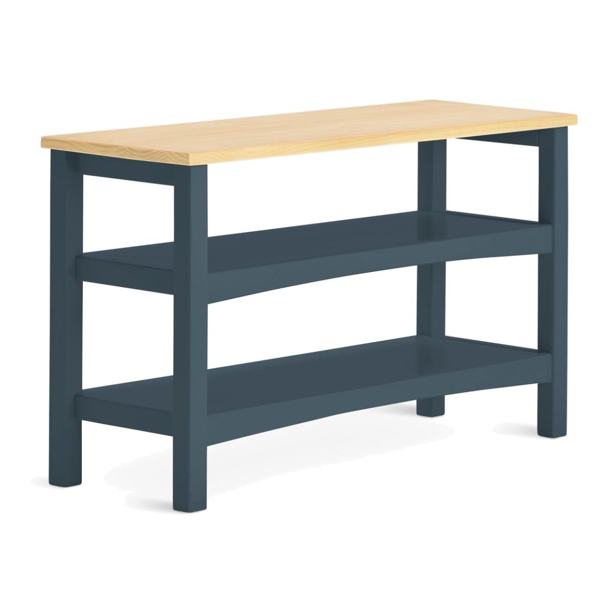 A must have for your hallway. With room to tuck away 8 pairs of footwear, our Bournemouth 2 tier shoe rack helps keep your space clutter free. The classic design has a blue paint finish and a pine top. Smart space saving storage. Part of the Bournemouth collection. Made from solid pine and MDF with a painted finish. Stores an average of 8 pairs of shoes. Up to maximum shoe size 11. 2 fixed shelves. Size H48, W80, D30cm. Weight 9kg. Self-assembly. Package Dimensions: Package 1 dimensions: H16.4, W90.6, D38.1cm. Package 1 weight: 11kg. FSC certified meaning the materials used for this product are responsibly sourced. General information: Manufacturer's 1 year guarantee.