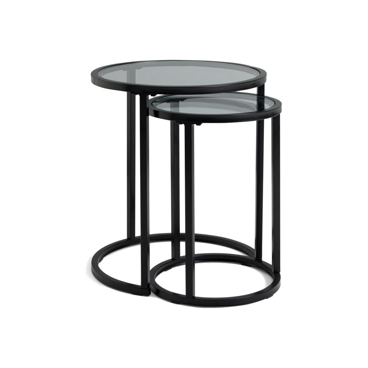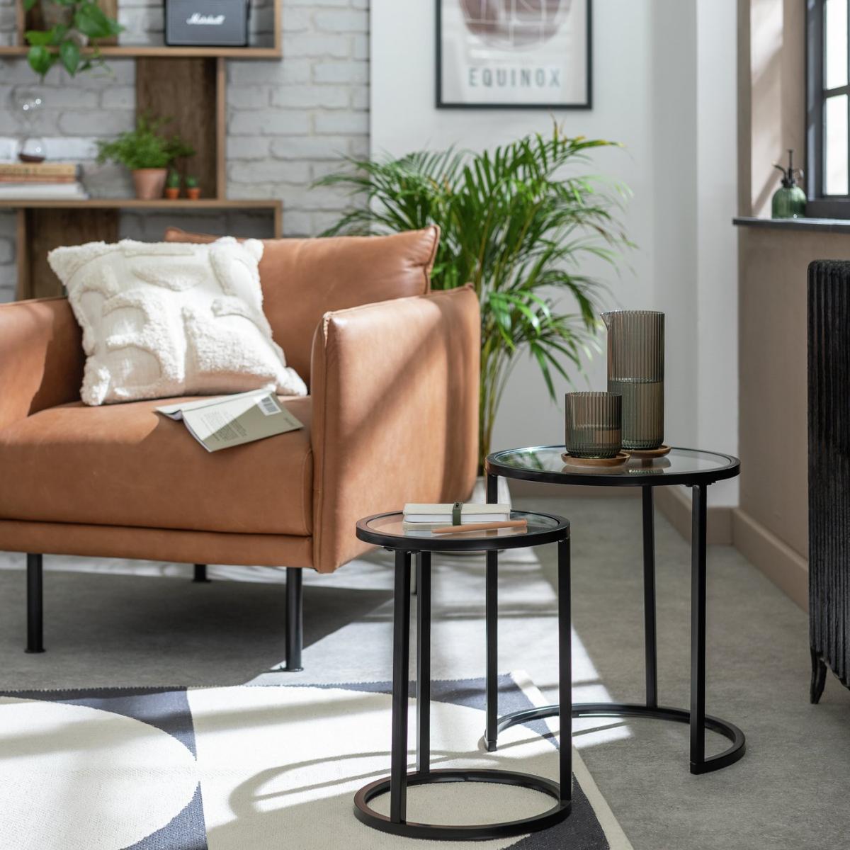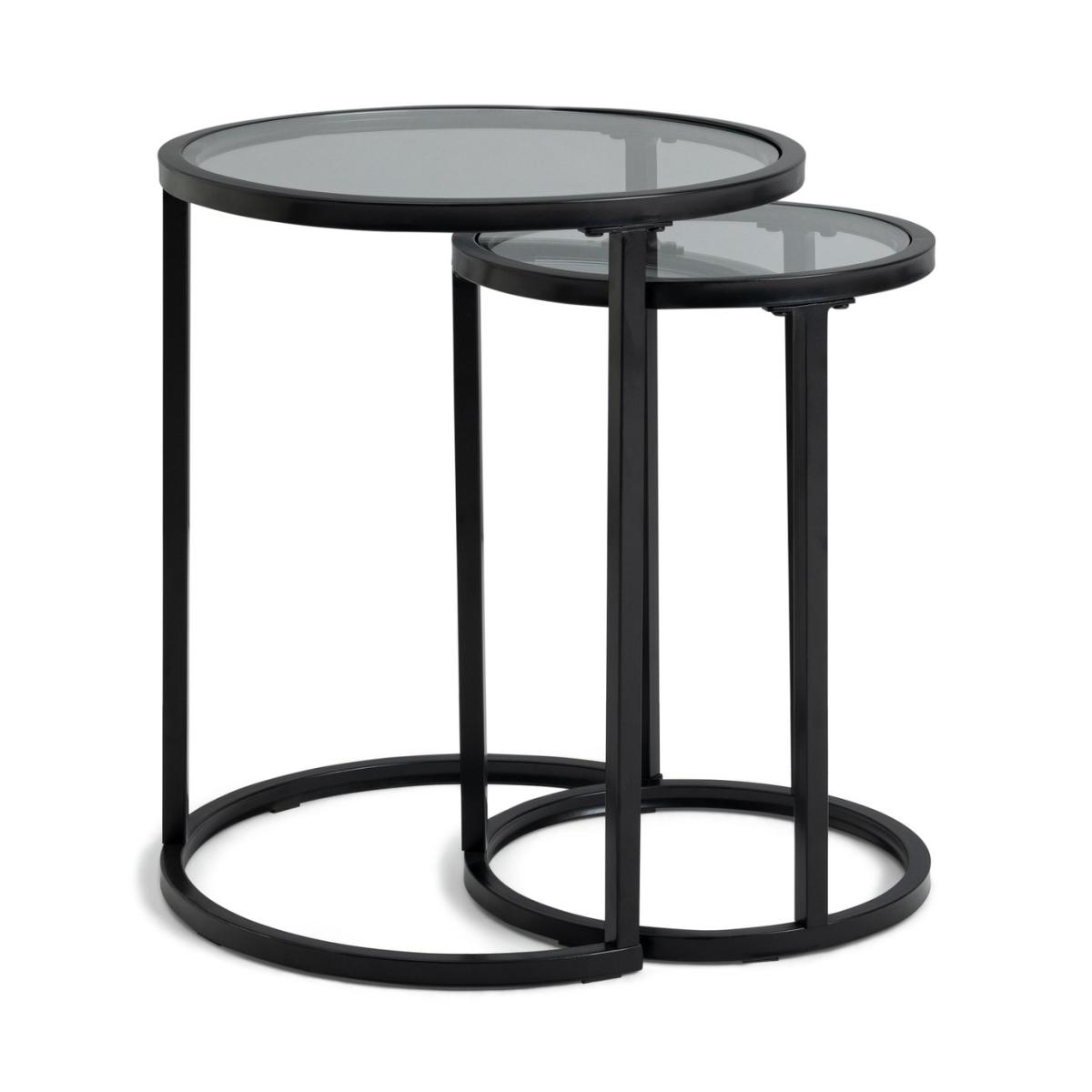 Fab together or apart. These 2 nesting tables shout industrial chic with their smooth glass surfaces and black steel frames. Sleek, smart, space savers. Part of the Boutique collection. Made from metal and glass. Size of largest table H45, W40, D40cm. Size of medium table H40, W30, D30cm. Weight 8.6kg. Maximum load weight 130kg. Self-assembly. 1 person recommended. Package Dimensions: Package 1 dimensions: H11.5, W59, D56.5cm. Package 1 weight: 9.8kg. General information: We are excited to be welcoming some of our favourite HOME products into the Habitat range. Your product may arrive in Habitat or HOME packaging. Manufacturer's 1 year guarantee.