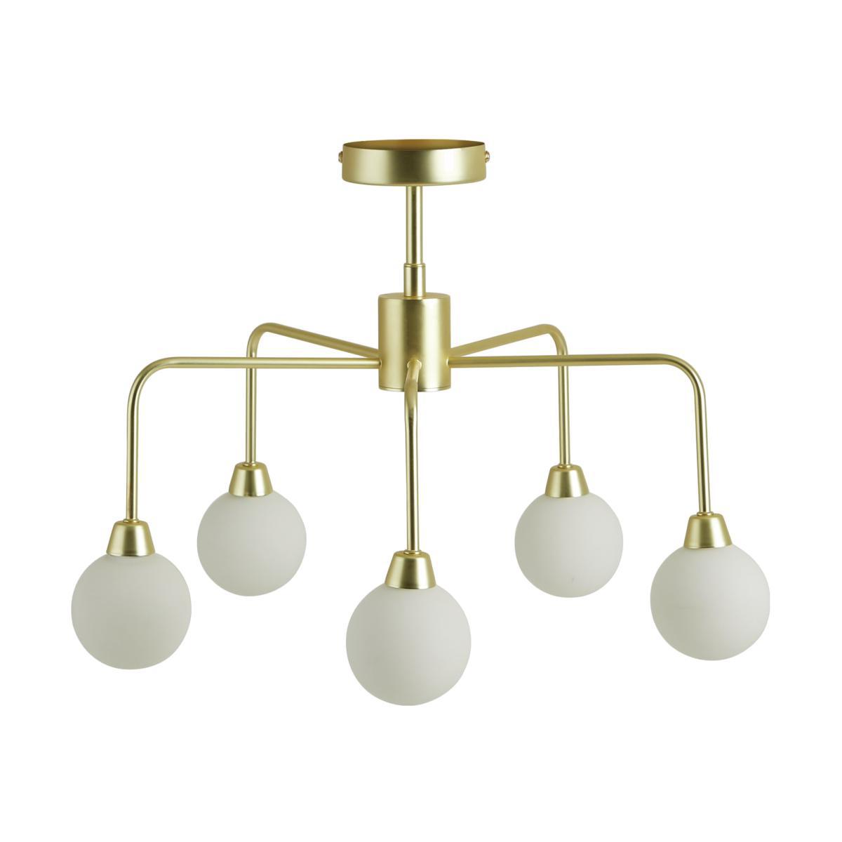Lighting that's in a class of its own. Our Boyd glass and brushed brass ceiling light is a modern-day chandelier. Hang it in your hallway or living room to meet visitors in style. The structured 5-arm brass frame supports lovely opal glass balls which emit a soft even glow. Great-looking switched on or off, don't you agree?