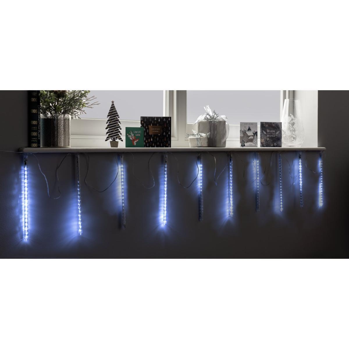 The perfect finishing touch to your winter wonderland, these chasing waterfall LEDs will bring a sprinkle of Christmas magic. Perfect for hanging along the front of your house or trailing from a tree, they'll give off the effect of cascading water. Powered by the mains, you've got 5m of cable between the plug and first light, plenty of room to get them into position. Suitable for indoor and outdoor use.