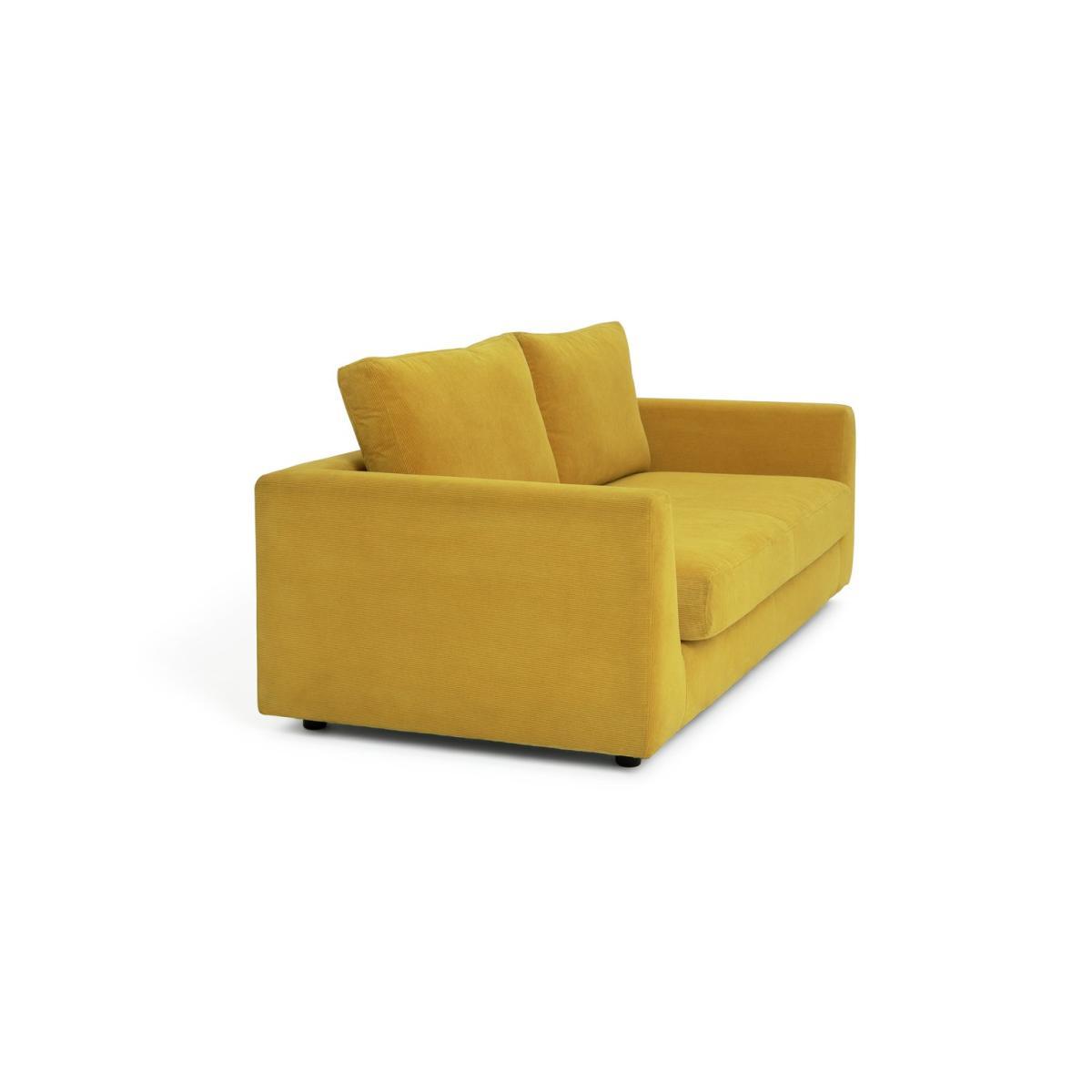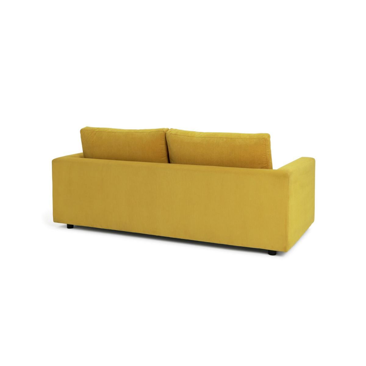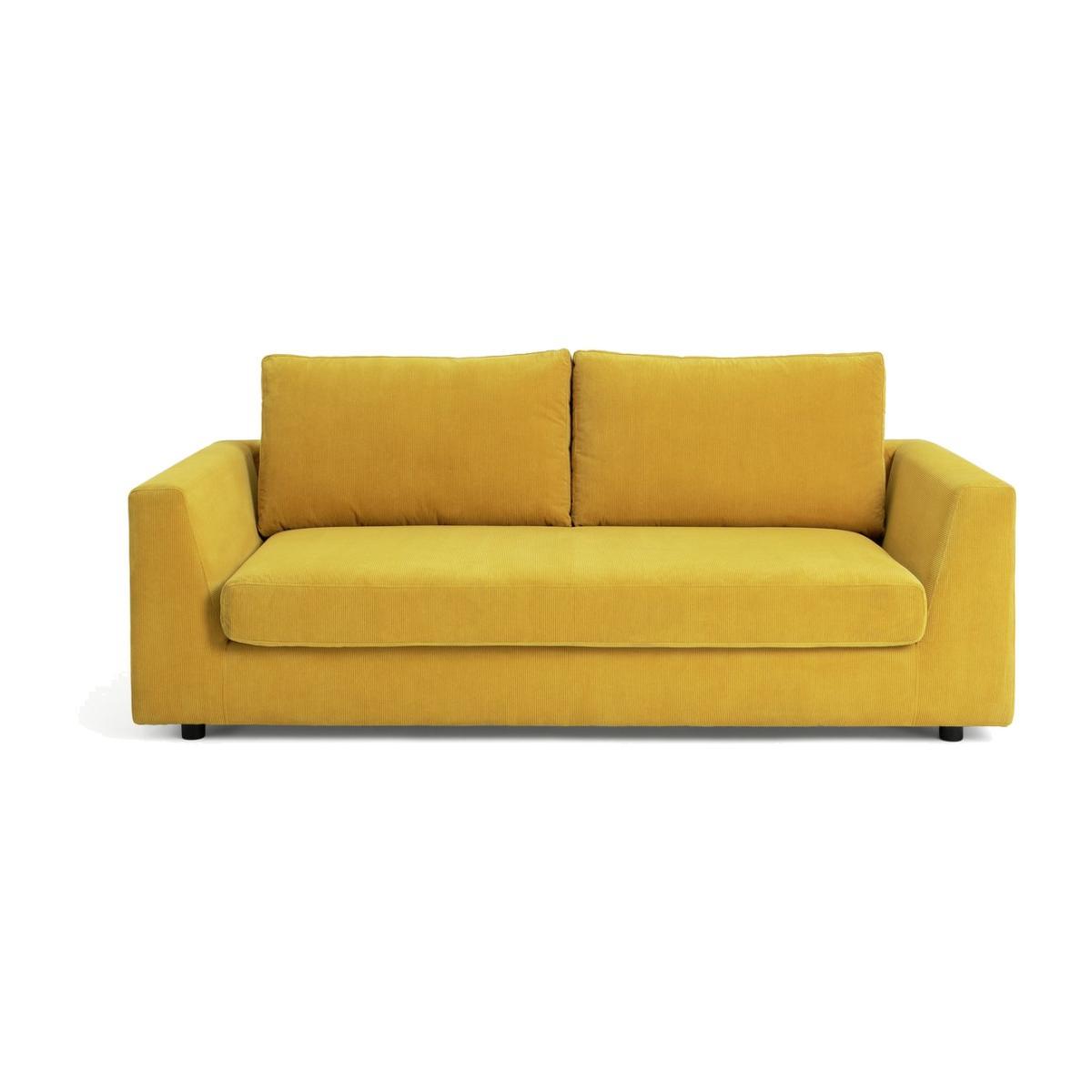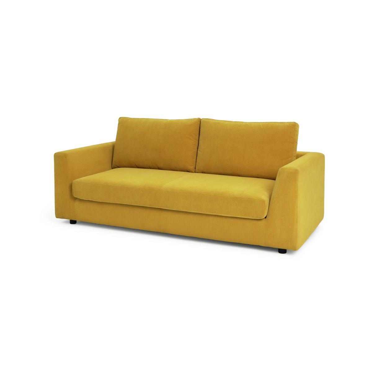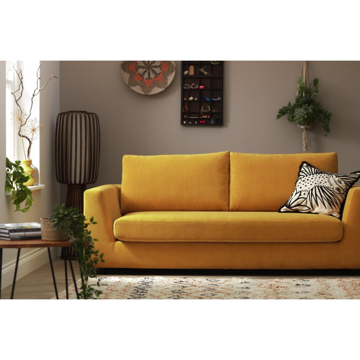 I love this sunny yellow sofa for bringing a splash of colour and personality into both modern and eclectic interiors. Its clean lines and compact three-seater design make it versatile enough for open-plan living or smaller spaces. The fabric feels inviting and easy to maintain, which is ideal for daily use. To style it effectively, consider pairing with neutral or pastel accessories to let the sofa be the focal point, and add textured cushions or throws for extra comfort. It works particularly well in lively, contemporary schemes or as a statement piece in more muted, minimalist spaces, creating a cheerful and welcoming vibe.
