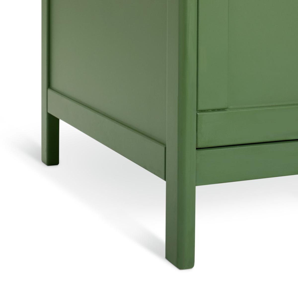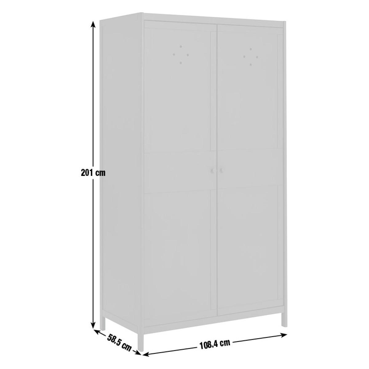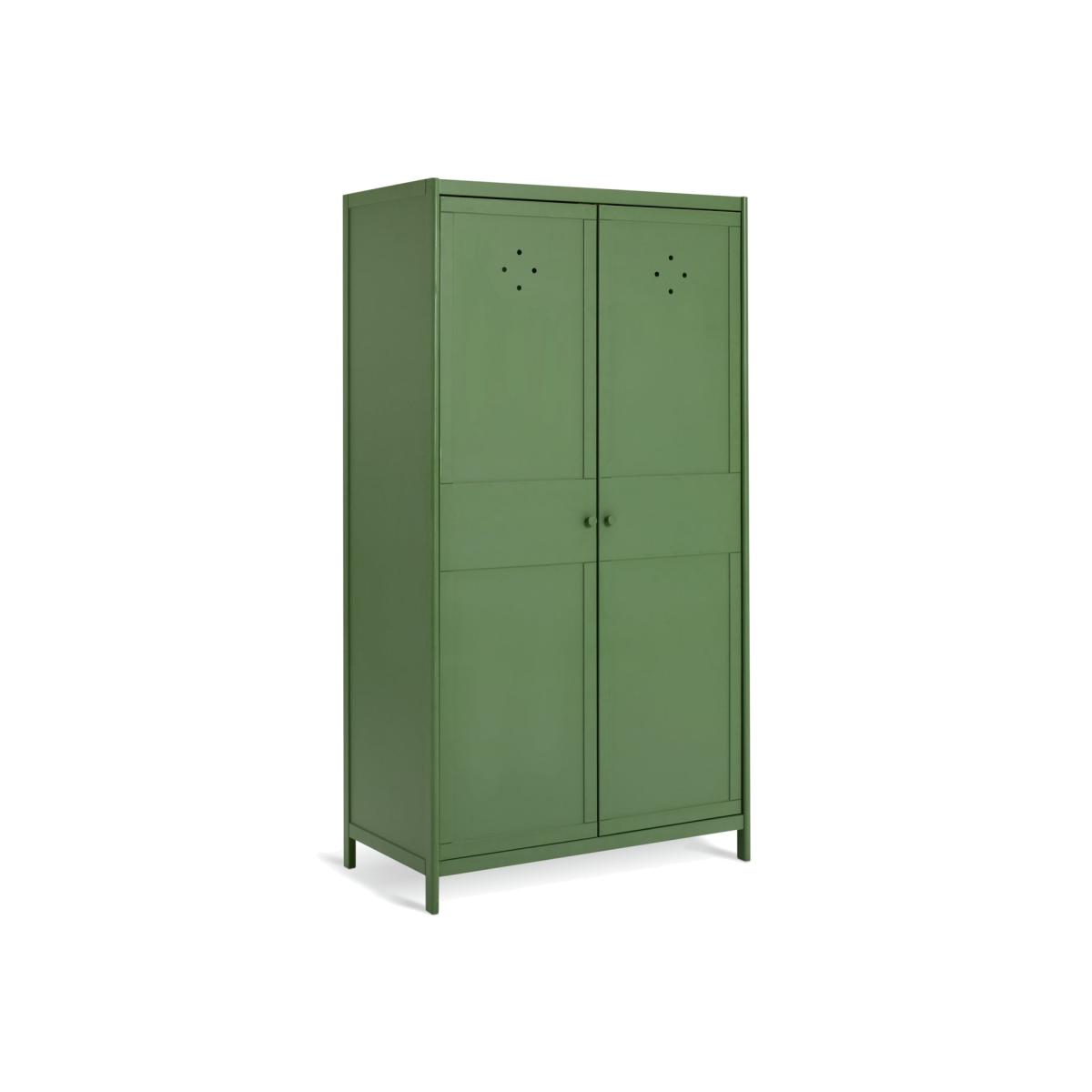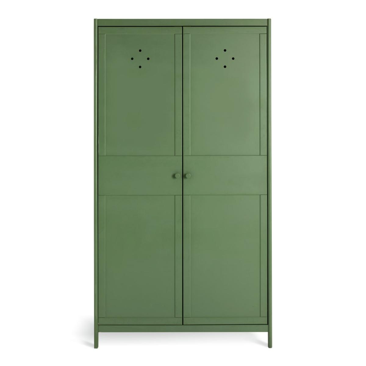 Solid, classic, Shaker style. Designed in-house, this sage green wardrobe has a timelessly accommodating feel. Reassuringly made from solid pine, with a painted finish and easy to grip round wooden handles. Open the 2 doors and you'll find a hanging rail, and low shelf. That's clothes, shoes and bags sorted. Yes, Bronte is bedroom furniture you can rely on. Part of the Bronte collection. Made of solid pine and MDF. Wooden handles. Additional handles not included. 2 doors. Soft close. 1 fixed hanging rail. Hanging rail holds up to 20kg. Self-assembly - 2 people recommended (includes wall fixings). If this product is over 60cm high it must be securely attached to the wall to prevent overturning. Dimensions: Size H201, W108.4, D58.5cm. Internal hanging space H166.25, W103.3, D56.7cm. Handle size: L2.5, W2cm. Weight 84kg. General information: FSC certified meaning the materials used for this product are responsibly sourced. Manufacturer's 1 year guarantee.