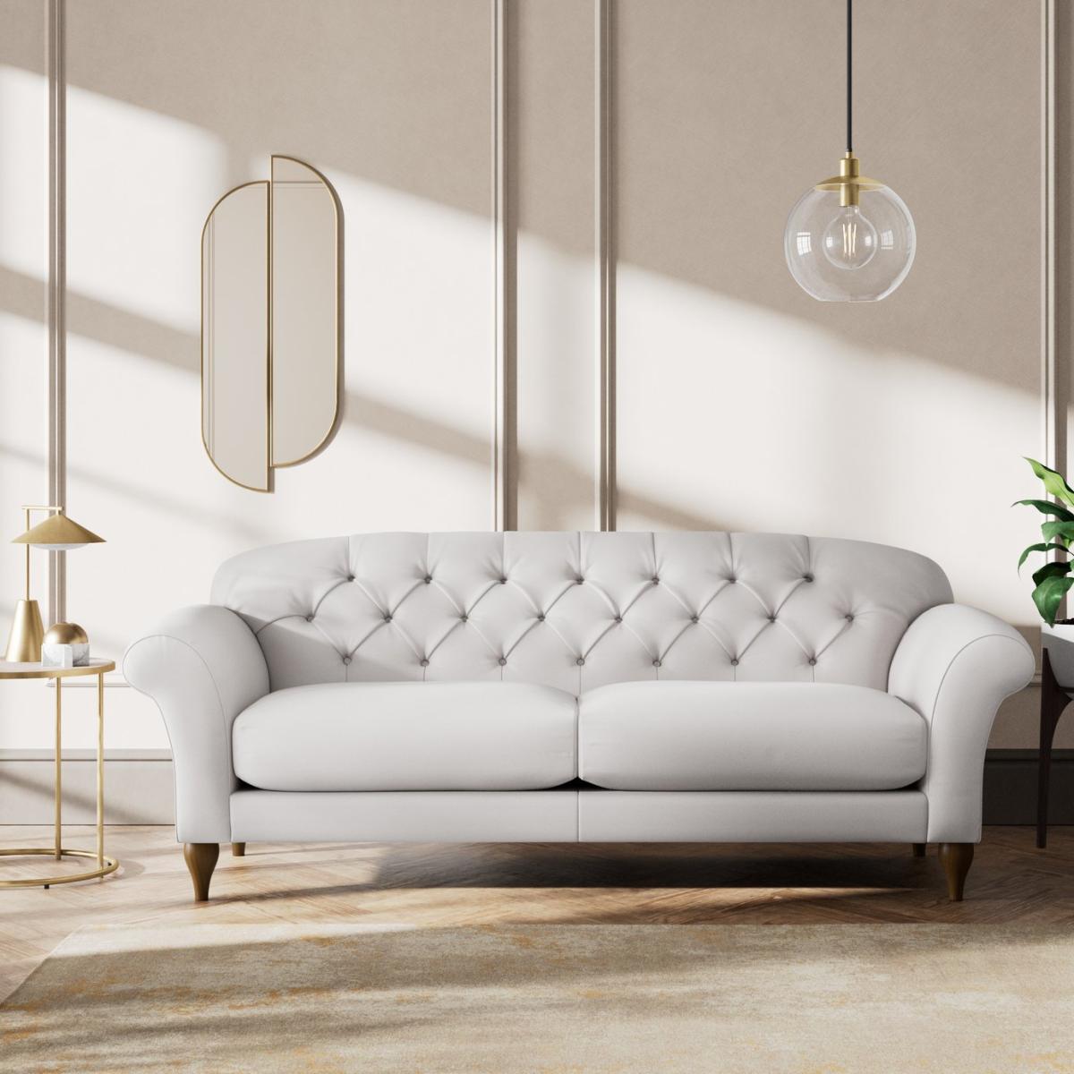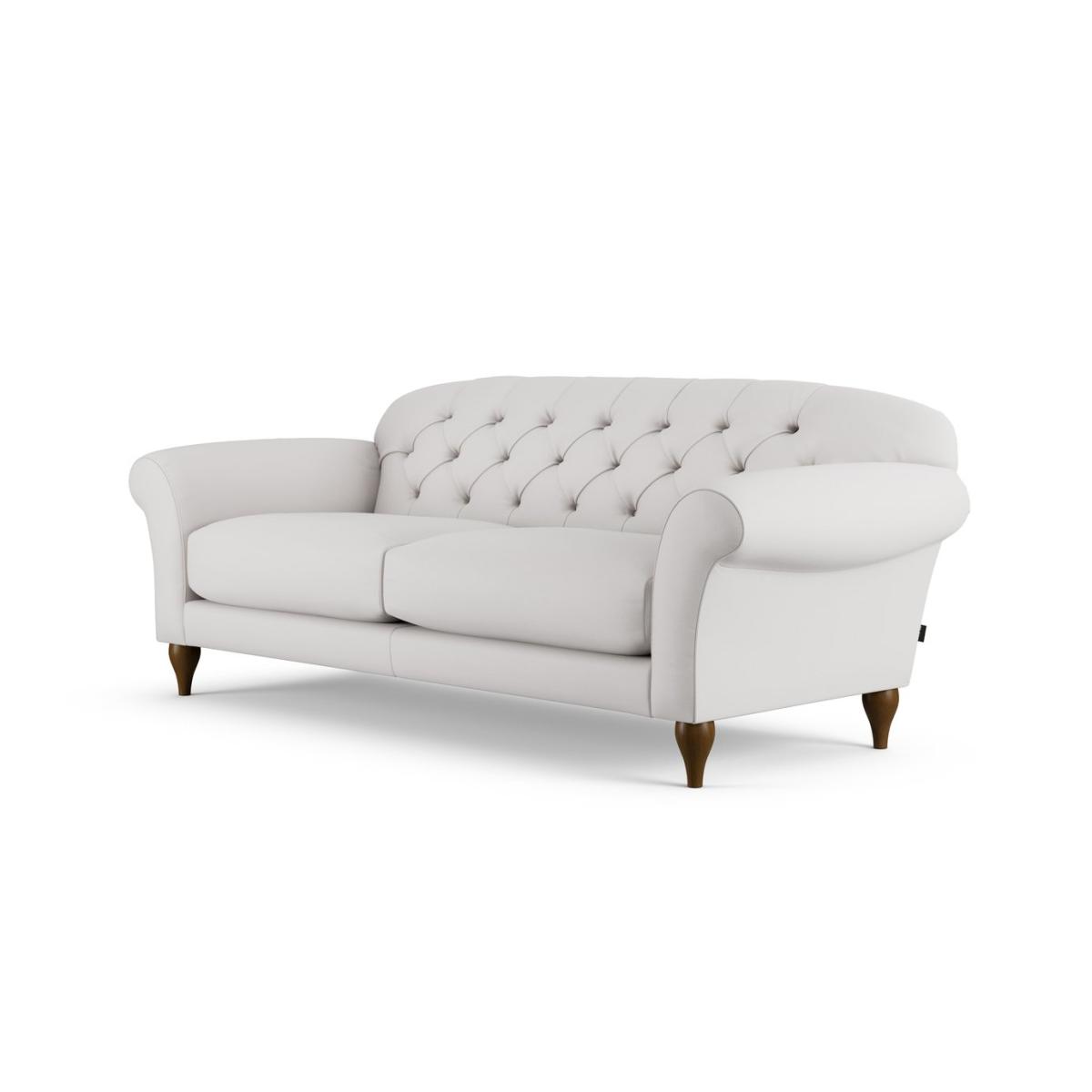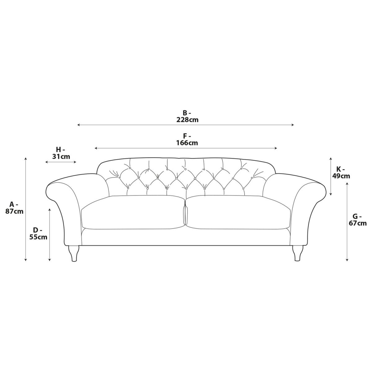 When it's made for you, you know you'll love it. Brooker is a stand-out sofa, blending traditional luxury with a modern feel. Upholstered in Aquaclean chenille the Brooker combines a soft feel with easy-clean durability. The deep button, diamond formation of the backrest adds elegance, while the exaggerated scroll arm rests bring plenty of contemporary cool. Offering a more supportive seat, Brooker's high density foam seat cushions sandwiched between softer foam layers, create a more tailored look while providing the perfect balance of support, durability and recovery. Handmade to order in the UK. The Brooker uses quality materials and traditional techniques for furniture that's unique to you. Available in a choice of sizes and fabrics including Aquaclean technology protection built into the yarn, which is easy to clean with just water. Part of the Brooker collection. Material: Made from 100% polyester. Wooden feet - dark wood. Removable seats with foam fibre wrap filling. Removable cushion(s) with foam fibre wrap filling. Free fabric swatch available on this line. Dimensions: Size H87, W228, D100cm. Floor to seat height: 55cm. Depth of seat: 69cm. Height of seat back: 49cm. Width of seating area between arms: 166cm. Height of arm rest: 67cm. Weight: 60kg. Packaged dimensions: Package size H77, W233, D105cm. General information: FSC certified meaning the materials used for this product are responsibly sourced. We do more than deliver your product, we unpack, set it up and take away the packaging. Manufactured in the UK using components sourced globally. Professional clean only. Plump cushions regularly to maintain shape. Manufacturer's 15 year frame guarantee.