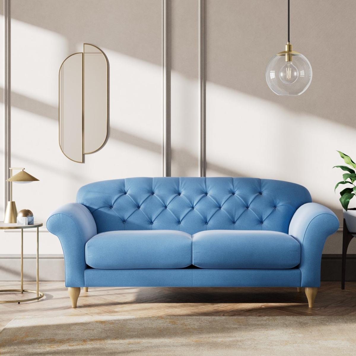 When it's made for you, you know you'll love it. Brooker is a stand-out sofa, blending traditional luxury with a modern feel. Upholstered in rich velvet, it takes on a luxe look. The deep button, diamond formation of the backrest adds elegance, while the exaggerated scroll arm rests bring plenty of contemporary cool. Offering a more supportive seat, Brooker's high density foam seat cushions sandwiched between softer foam layers, create a more tailored look while providing the perfect balance of support, durability and recovery. Handmade to order in the UK. The Brooker uses quality materials and traditional techniques for furniture that's unique to you. Available in a choice of sizes and fabrics including Aquaclean technology protection built into the yarn, which is easy to clean with just water. Part of the Brooker collection. Material: Made from 100% recycled polyester. Wooden feet - ash. Removable seats with foam fibre wrap filling. Removable cushion(s) with foam fibre wrap filling. Free fabric swatch available on this line. Dimensions: Size H87, W207, D100cm. Floor to seat height: 55cm. Depth of seat: 69cm. Height of seat back: 49cm. Width of seating area between arms: 145cm. Height of arm rest: 67cm. Weight: 54kg. Packaged dimensions: Package size H77, W212, D105cm. General information: FSC certified meaning the materials used for this product are responsibly sourced. We do more than deliver your product, we unpack, set it up and take away the packaging. Manufactured in the UK using components sourced globally. Professional clean only. Plump cushions regularly to maintain shape. Manufacturer's 15 year frame guarantee.