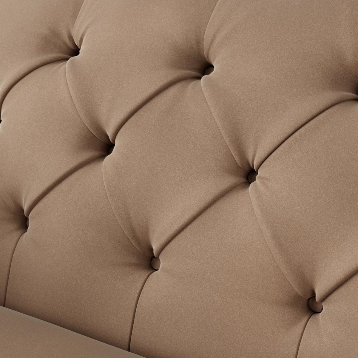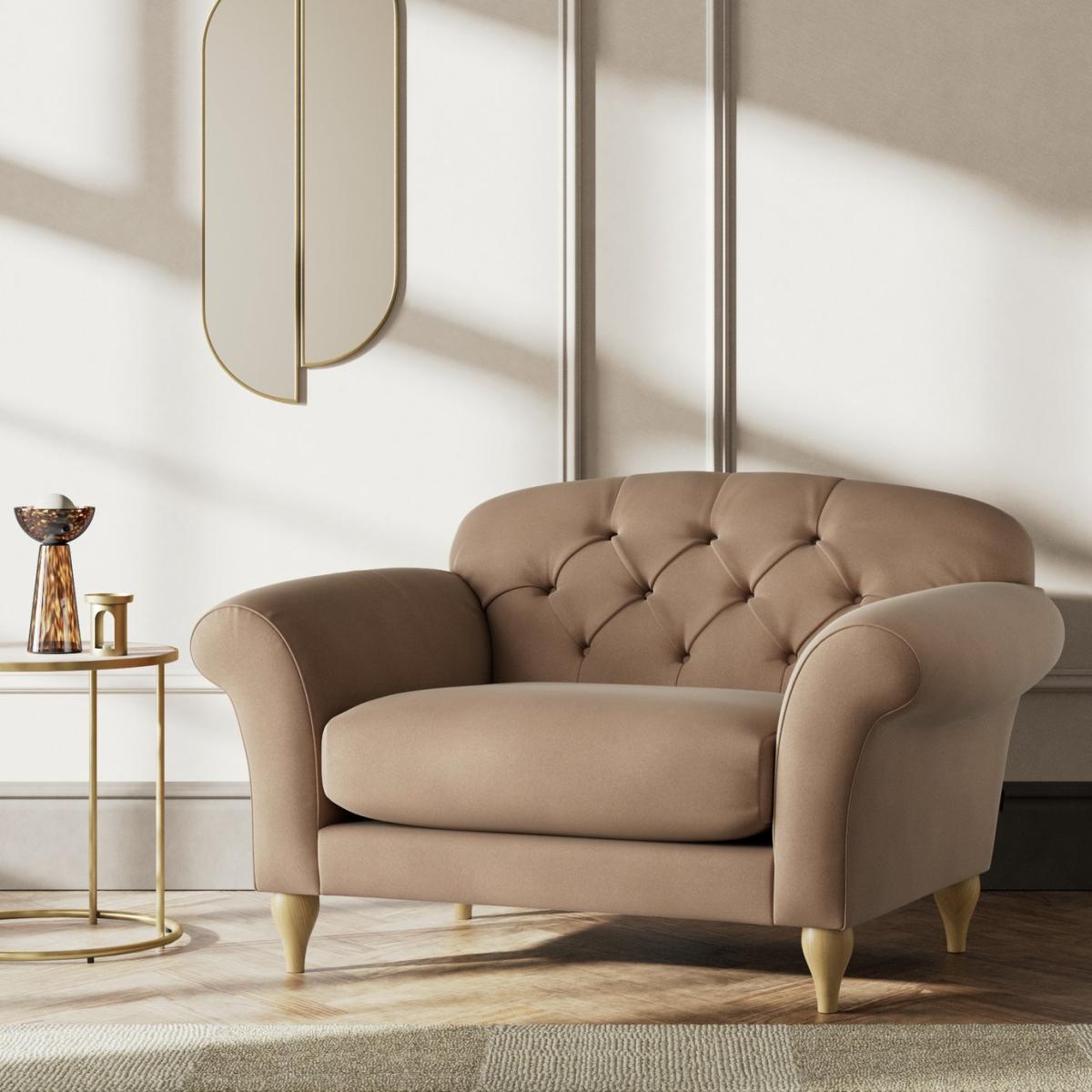 When it's made for you, you know you'll love it. Brooker is a stand-out sofa, blending traditional luxury with a modern feel. Upholstered in rich velvet, it takes on a luxe look. The deep button, diamond formation of the backrest adds elegance, while the exaggerated scroll ARM rests bring plenty of contemporary cool. Offering a more supportive seat, Brooker's high density foam seat cushions sandwiched between softer foam layers, create a more tailored look while providing the perfect balance of support, durability and recovery. Handmade to order in the UK. The Brooker uses quality materials and traditional techniques for furniture that's unique to you. Available in a choice of sizes and fabrics including Aquaclean technology protection built into the yarn, which is easy to clean with just water. Part of the Brooker collection. Material: Made from 100% recycled polyester. Wooden feet. Removable seat with foam fibre wrap filling. Removable cushion(s) with foam fibre wrap filling. Free fabric swatch available on this line. Dimensions: Size H87, W144, D100cm. Floor to seat height: 55cm. Depth of seat: 69cm. Height of seat back: 49cm. Width of seating area between arms: 82cm. Height of ARM rest: 67cm. Weight: 30kg. Packaged dimensions: Package size H77, W149, D105cm. General information: Your seat cushions may feel a little firm on delivery, they are brand new and will soften with regular use over the next few months. We do more than deliver your product, we unpack, set it up and take away the packaging. Manufactured in the UK using components sourced globally. Professional clean only. Plump cushions regularly to maintain shape. Manufacturer's 15 year frame guarantee.