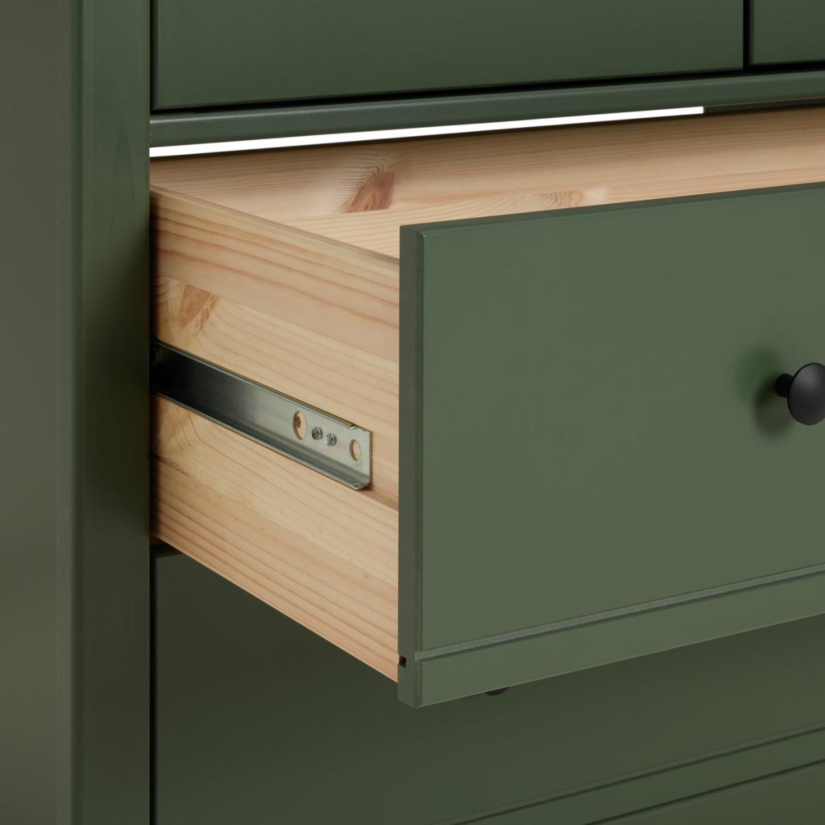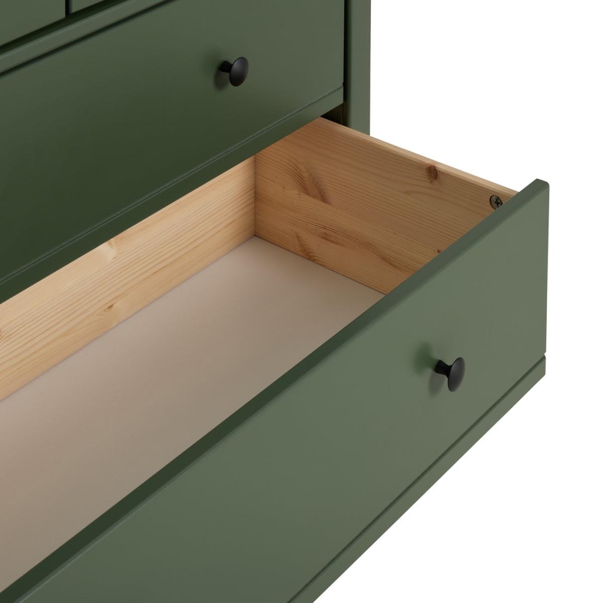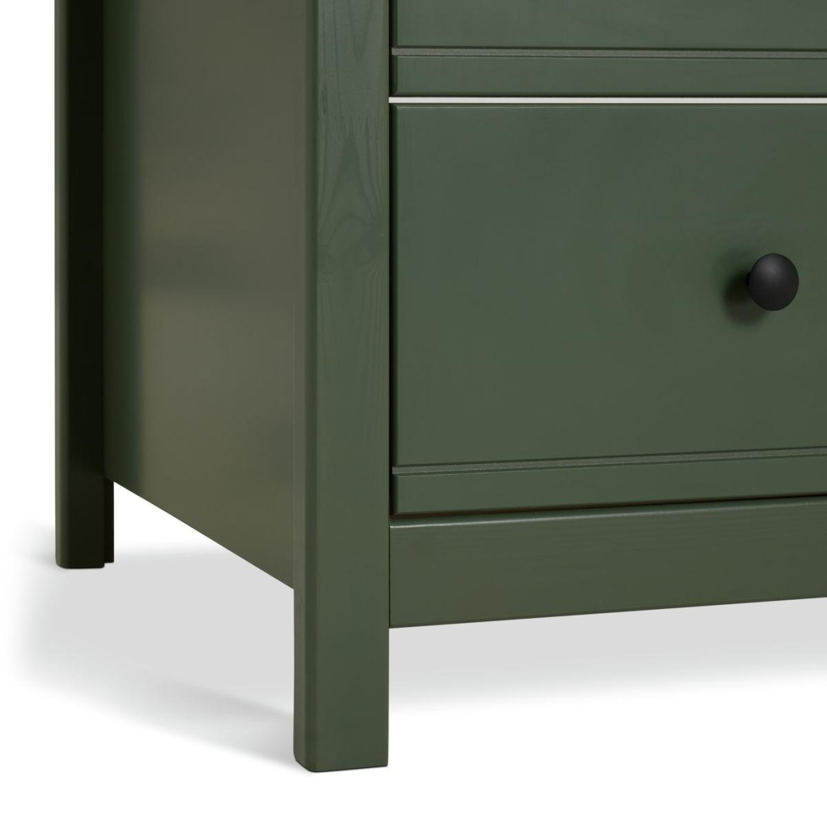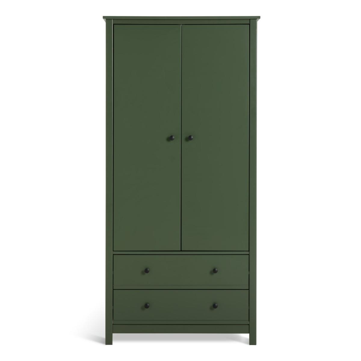 Big and little fashionistas will love Brooklyn. A spacious 2-door green painted wardrobe, perfect for kids and adults alike. Made from solid pine and MDF it's built to withstand life's knocks and bumps. With round handles and 2 easy glide drawers. Brooklyn's here for the long haul. Part of the Brooklyn collection. Made of MDF and solid pine. Metal handles. Additional handles not included. 2 doors. 2 drawers with metal runners. 1 fixed hanging rail. Hanging rail holds up to 15kg. Packed flat - 2 people recommended (includes wall fixings). If this product is over 60cm high it must be securely attached to the wall to prevent overturning. Dimensions: Size H180.1, W86, D55cm. Internal hanging space H119, W74.8, D52cm. Internal drawer H15.3, W71.6, D33.6cm. Handle size: L2.7, W2.7cm. Weight 55kg. Package Dimensions: Package 1 dimensions: H7.2, W52.5, D184.3cm. Package 1 weight: 34.6kg. Package 2 dimensions: H7.5, W59.4, D91.8cm. Package 2 weight: 20.6kg. General information: FSC certified meaning the materials used for this product are responsibly sourced. Manufacturer's 1 year guarantee.