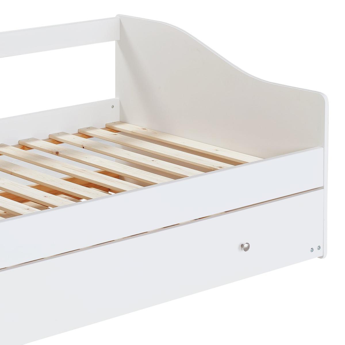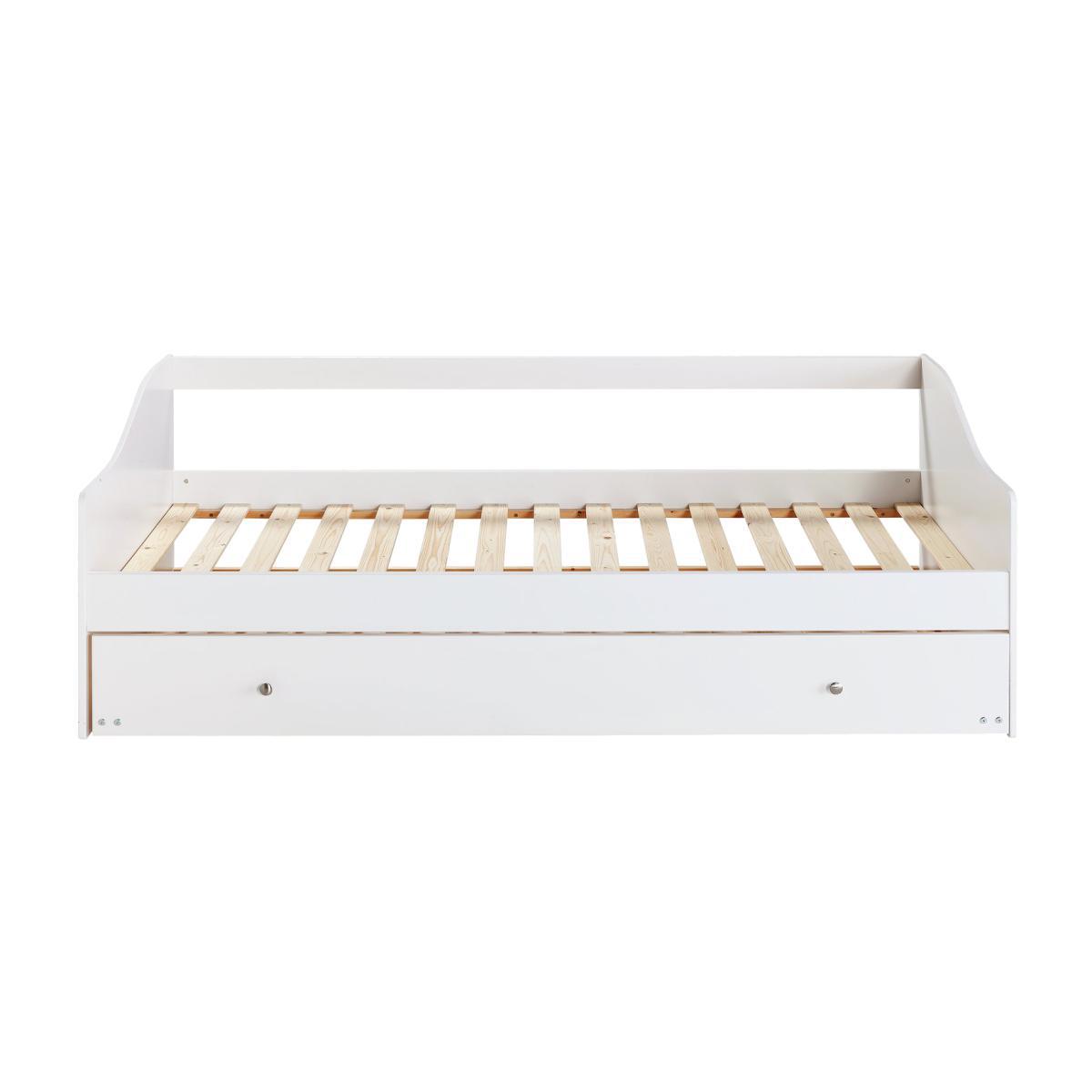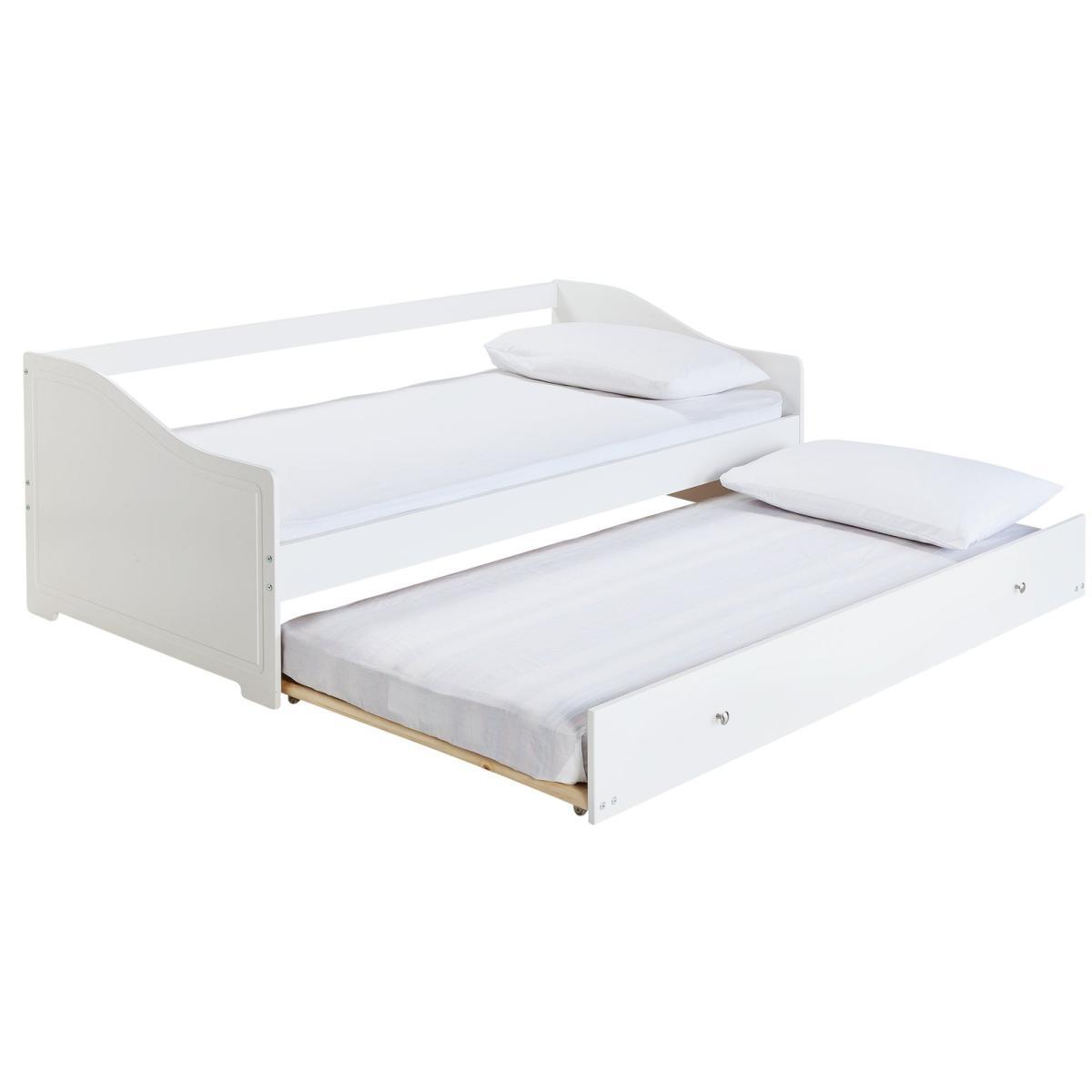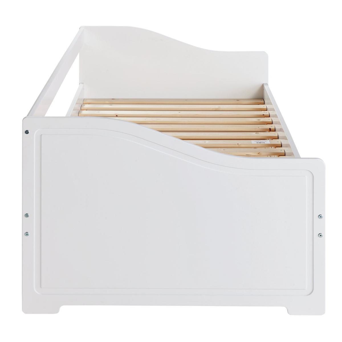 Our Brooklyn day bed is made from solid pine, with chunky top rails and a sturdy frame. It's the perfect sofa by day for reading and playing, then there's a trundle bed underneath which can be pulled out for sleepovers in the evening. It includes 2 Silentnight sprung mattresses which have an open coil design to provide firm support, while fibre filling adds a layer of cushioning. Foam free and chemical treatment free, they have a soft anti-allergy cover to help prevent dust mites, skin irritations and allergies. But if you love the day bed and don't need the trundle, we also do a version with drawers underneath for tucking toys and books out of sight. And to complete the room, we've got a coordinating Brooklyn furniture range that includes drawers, a desk, a bedside table, and a choice of 2 wardrobes. Part of the Brooklyn collection. Bed frame:Single bed. White bed with a solid wood frame. Includes wooden slats. Self-assembly - 2 people recommended. Maximum user weight 120kg. For ages 4 years and over. Suitable for adult use (safety tested to 100kg). Mattress:Requires 2 mattresses (included). Silentnight mattress. Medium feel mattress. Open coil mattress with 323 springs. Knit cover with micro quilt finish. Anti allergy. Rotate mattress regularly. Dimensions:Frame size L193.2, W95.4, H68cm. Mattress size L190, W90, D15cm. Trundle size L189, W93.9, D23cm. Package dimensions:Package 1 size H7.5, W71.4, D197.2cm. General information:Manufacturer's 2 year guarantee.
