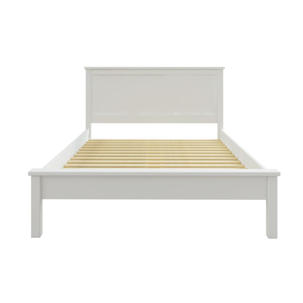 Our Brooklyn double bed is made from solid wood with a fresh white painted finish. Easy to style, the strong clean lines give it a classic aesthetic. Designed for long lasting comfort, the pine slates support and aerate your mattress, Brooklyn is a timeless bedframe that's destined to become part of the family. In a New York frame of mind? Check out the rest of our Brooklyn furniture range that includes drawers, a desk, a bedside table and wardrobes. Generously sized for couples or anyone who appreciates extra space, this Brooklyn double bed offers a cozy and comfortable sleep experience. Part of the Brooklyn collection. Wooden frame. Base with wooden slats. Size W130.4, L203.4, H100.4cm. Height to top of siderail 36.5cm. 22cm clearance between floor and underside of bed. Weight 35.4kg. Total maximum user weight 220kg. Packed flat - 2 people recommended. Package Dimensions: Package 1 dimensions: H7.4, W26.9, D195.5cm. Package 1 weight: 16.4kg. Package 2 dimensions: H151.2, W53, D7.2cm. Package 2 weight: 21.7kg. General Information: Manufacturer's 2 year guarantee.