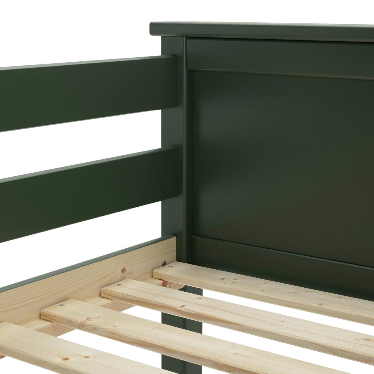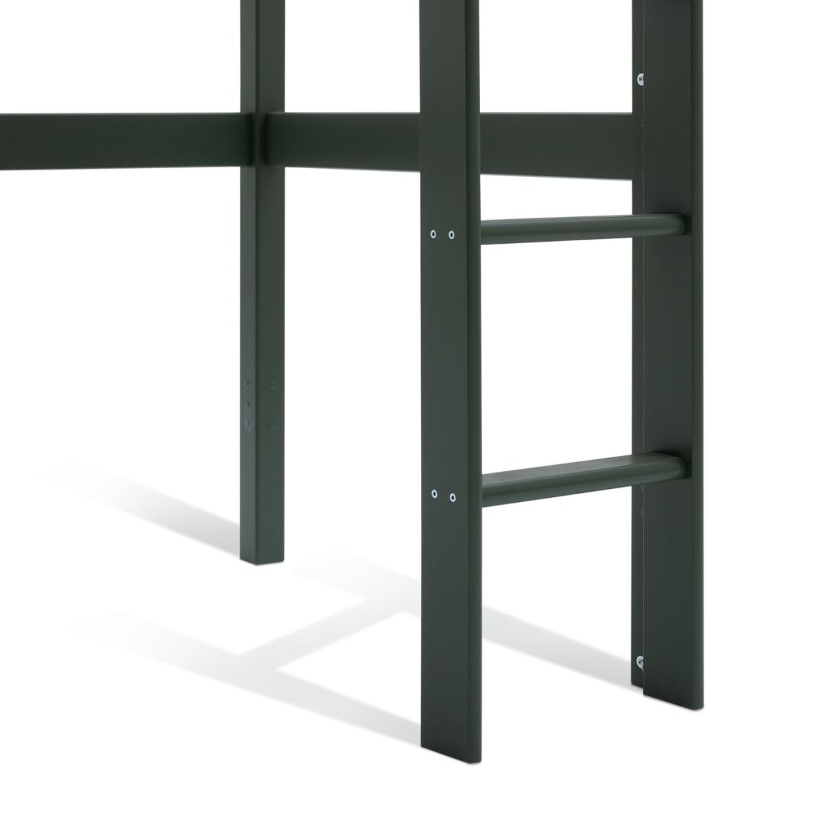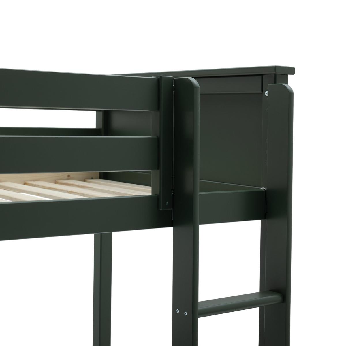 Our Brooklyn high sleeper bed is made from solid pine, with chunky top rails and a sturdy frame. There's a fixed ladder for easy access which can be placed at either end of the bed so you can make sure it suits the layout of your room. It has safe, high sides and a classic look that'll suit them for years. High sleepers are perfect for smaller rooms, so you can reclaim the space underneath for a desk, drawers, or maybe a den! Ladder can be positioned either side of the bed. Part of the Brooklyn collection. Sleeper: Single bed. Green bed with a mdf frame. Includes wooden slats. Self-assembly - 2 people recommended. If this product is over 60cm high it must be securely attached to the wall to prevent overturning. Maximum user weight per bunk 120kg. For ages 6 years and over. Suitable for adult use (safety tested to 100kg). Mattress: (not included). For safety, maximum depth of mattress to be used is 16cm. Dimensions: Safety rail height 35cm. Frame size L200.4, W105, H184.7cm. Clearance between floor and underside of bed 139.6cm. Package dimensions: Package 1 size H17, W36.1, D193.5cm. General information: Manufacturer's 2 year guarantee.
