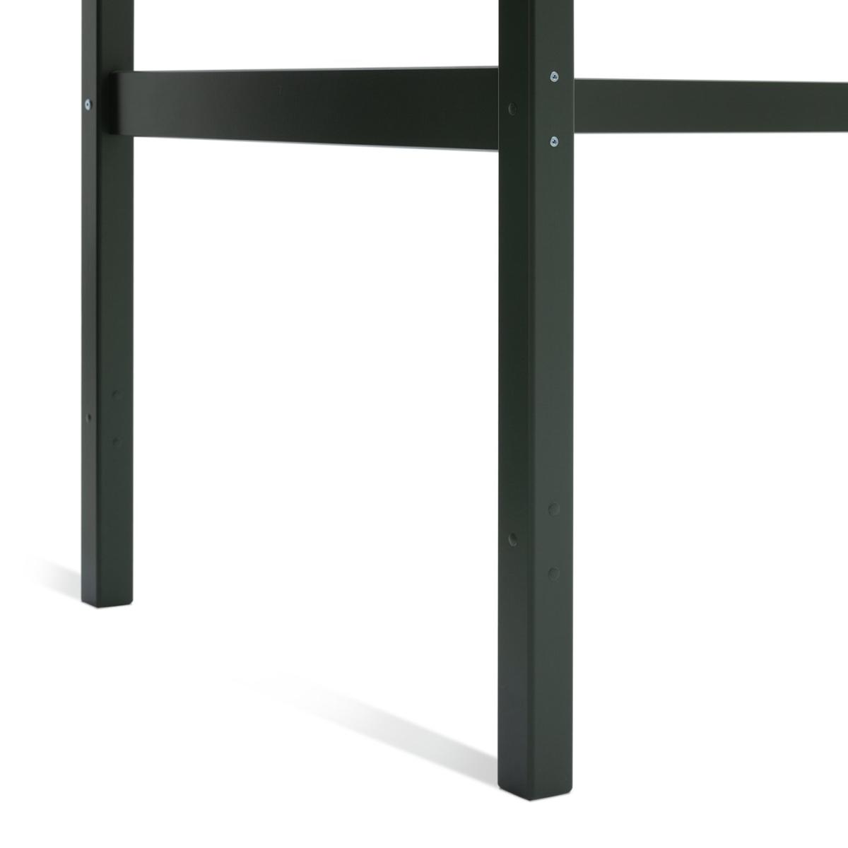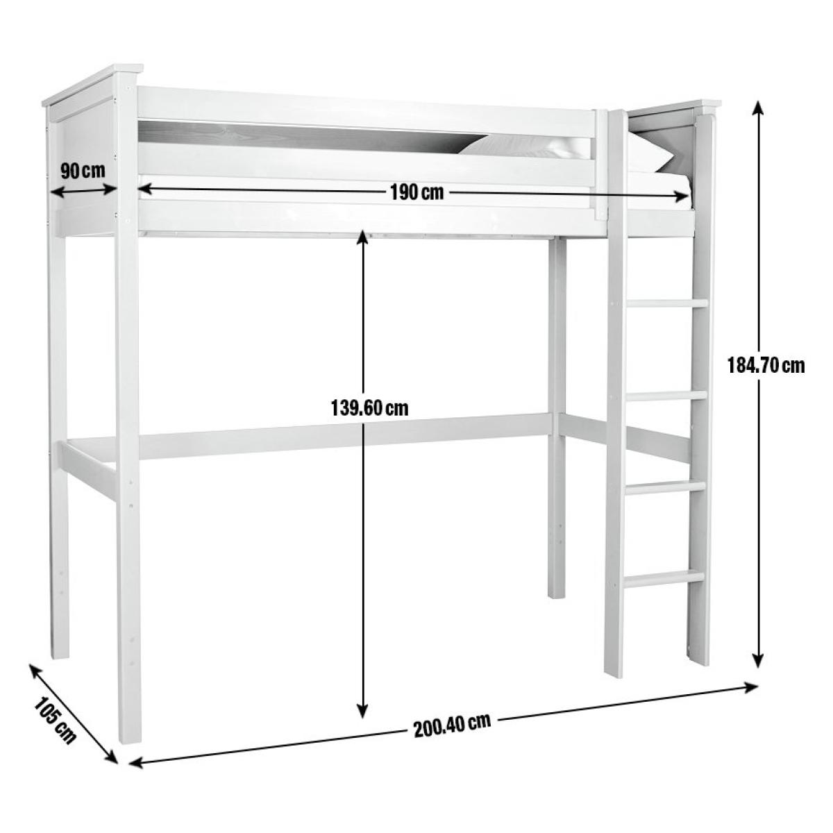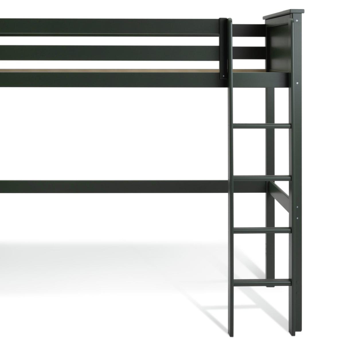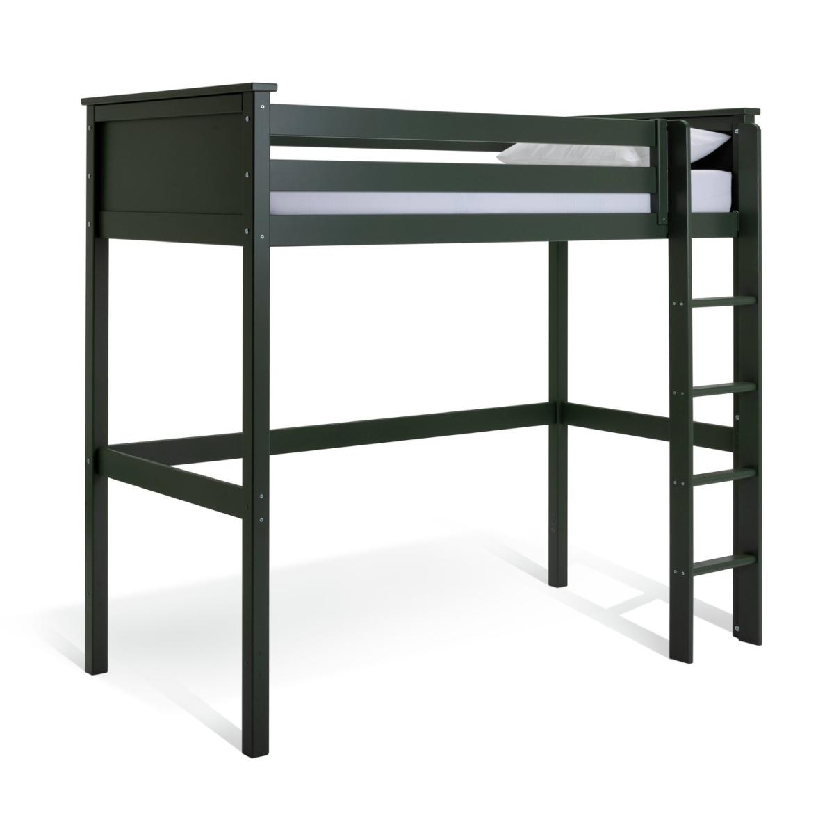 Our Brooklyn high sleeper bed is made from solid pine, with chunky top rails and a sturdy frame. There's a fixed ladder for easy access which can be placed at either end of the bed so you can make sure it suits the layout of your room. It has safe, high sides and a classic look that'll suit them for years. High sleepers are perfect for smaller rooms, so you can reclaim the space underneath for a desk, drawers, or maybe a den! Ladder can be positioned either side of the bed. Part of the Brooklyn collection. Sleeper: Single bed. Green bed with a mdf frame. Includes wooden slats. Self-assembly - 2 people recommended. If this product is over 60cm high it must be securely attached to the wall to prevent overturning. Maximum user weight per bunk 120kg. For ages 6 years and over. Suitable for adult use (safety tested to 100kg). Mattress: (not included). For safety, maximum depth of mattress to be used is 16cm. Dimensions: Safety rail height 35cm. Frame size L200.4, W105, H184.7cm. Clearance between floor and underside of bed 139.6cm. Package dimensions: Package 1 size H17, W36.1, D193.5cm. General information: Manufacturer's 2 year guarantee.