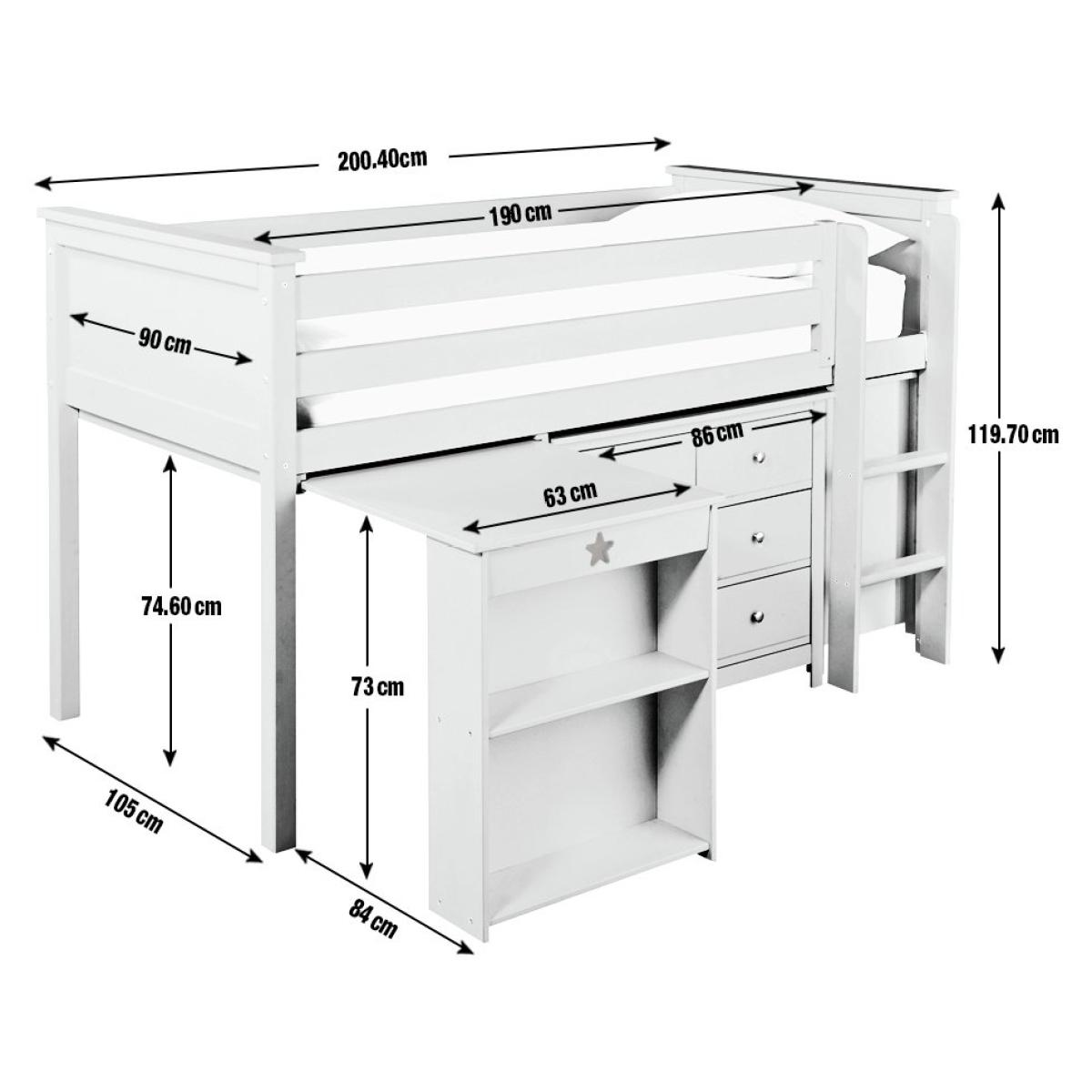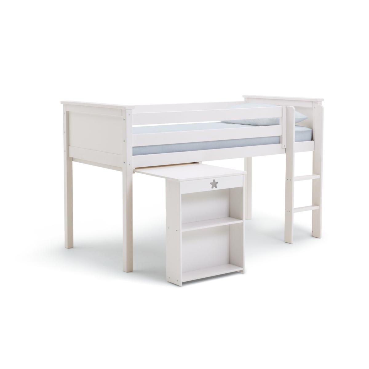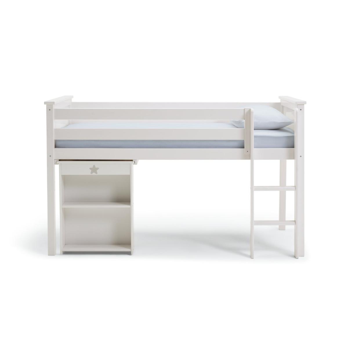 Our Brooklyn mid sleeper is made from solid pine, with chunky top rails and a sturdy frame. We're always saying how mid sleepers are great for small rooms, letting you make the most of the floor underneath, so with this one we've included a pull-out desk that's been perfectly tailored to sit in that space! Simply add a chair to create a great little work area. Kitting out the whole room? We've got a coordinating Brooklyn furniture range that includes drawers, a bedside table, and a choice of 2 wardrobes. Part of the Brooklyn collection. Sleeper: Single bed. White bed with a solid wood frame. Includes sprung wooden slats. Self-assembly - 2 people recommended. WARNING "This product must be attached to a wall or building structure". Ladder can be positioned either side of the bed. Maximum user weight per bunk 120kg. For ages 6 years and over. Mattress: For safety, maximum depth of mattress to be used is 16cm. Dimensions: Safety rail height 35cm. Frame size L200.4, W105, H119.7cm. Clearance between floor and underside of bed 74.6cm. Desk size H73.5, W60, D89cm. Package dimensions: Package 1 size H13, W36.1, D210.3cm. Package 2 size H6, W61.3, D102.7cm. General information: Manufacturer's 1 year guarantee.