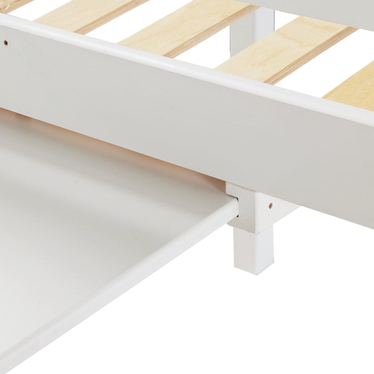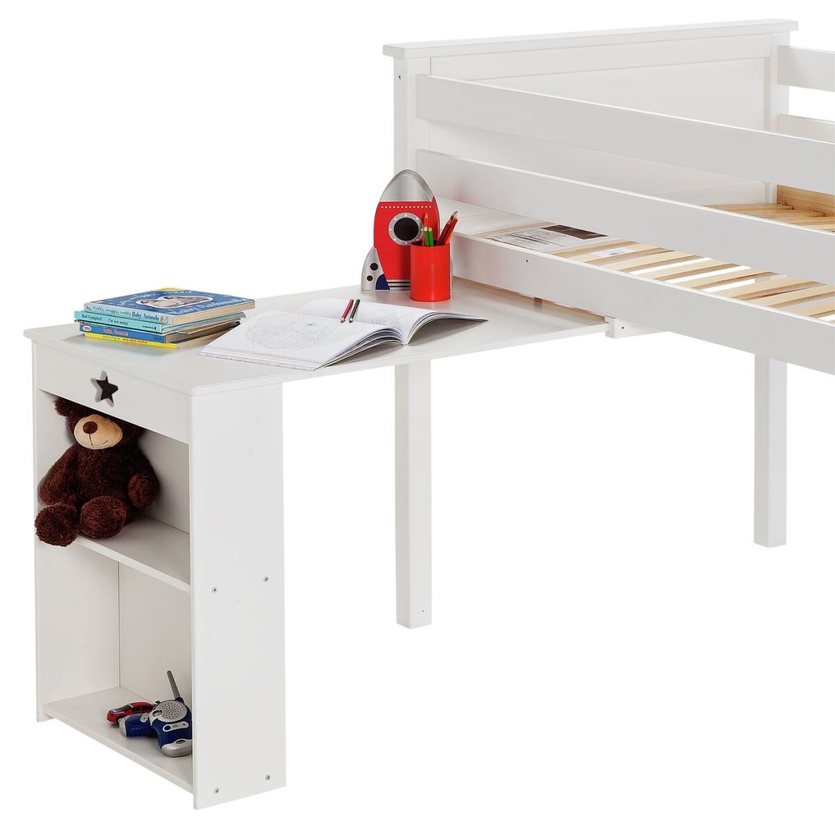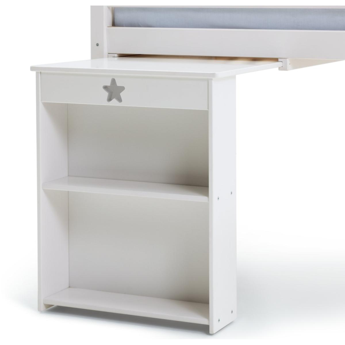 Our Brooklyn mid sleeper is made from solid pine, with chunky top rails and a sturdy frame. We're always saying how mid sleepers are great for small rooms, letting you make the most of the floor underneath, so with this one we've included a pull-out desk that's been perfectly tailored to sit in that space! Simply add a chair to create a great little work area. Kitting out the whole room? We've got a coordinating Brooklyn furniture range that includes drawers, a bedside table, and a choice of 2 wardrobes. Part of the Brooklyn collection. Sleeper: Single bed. White bed with a solid wood frame. Includes sprung wooden slats. Self-assembly - 2 people recommended. WARNING "This product must be attached to a wall or building structure". Ladder can be positioned either side of the bed. Maximum user weight per bunk 120kg. For ages 6 years and over. Mattress: For safety, maximum depth of mattress to be used is 16cm. Dimensions: Safety rail height 35cm. Frame size L200.4, W105, H119.7cm. Clearance between floor and underside of bed 74.6cm. Desk size H73.5, W60, D89cm. Package dimensions: Package 1 size H13, W36.1, D210.3cm. Package 2 size H6, W61.3, D102.7cm. General information: Manufacturer's 1 year guarantee.