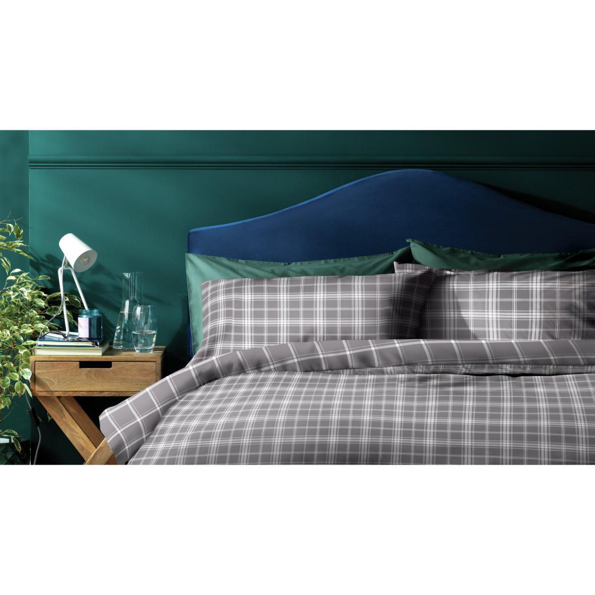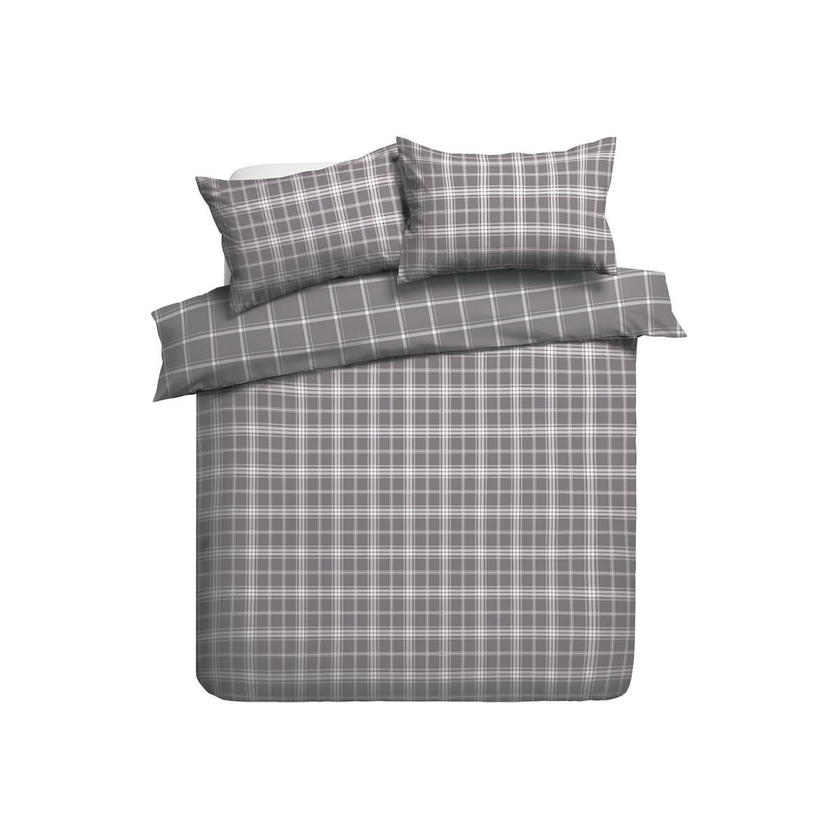 Check in for the night with our gorgeously grey double bed set. In 100% brushed cotton, it's luxuriously soft and indulgently cosy, perfect for a blissful night's sleep. Turn over the duvet cover for an alternative check design to switch up the look. Includes 2 matching pillowcase. Charming, cosy and tastefully timeless. What a dream.