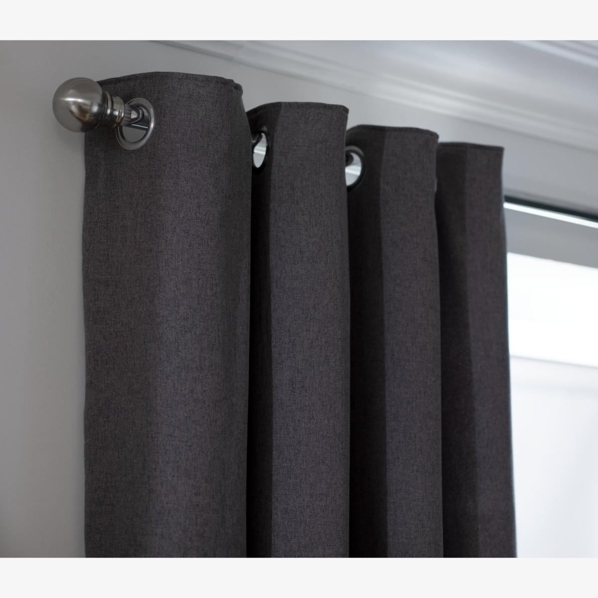 Easy, cosy curtain comfort. That's the big draw of these brushed thermal eyelet curtains. In soothing charcoal, they have a naturally homely style. Designed for warmth, the thermal backing helps keep the cold out and the heat in. And being lined also means they fall into soft satisfying folds from the shiny stainless-steel eyelets. Simply stylish. This pair of curtains have a thermal lining. So that's a big yes for snuggly privacy and luxury lie-ins. Bring out the natural beauty of these textured fabric curtains by choosing cushions and rugs that pick up on the soothing decor. Charcoal Plain Design. Silver Stainless Steel Eyelets. Features Made from 100% polyester. Lining made from 100% polyester. Dimensions Size 168cm (66 inches) wide by 229cm (90 inches) drop. Eyelet diameter: 4cm. General information Contains one pair of curtains. Suitable for curtain poles. Curtain pole not included. Professional clean only. General Information: We are excited to be welcoming some of our favourite HOME products into the Habitat range. Your product may arrive in Habitat or HOME packaging.
