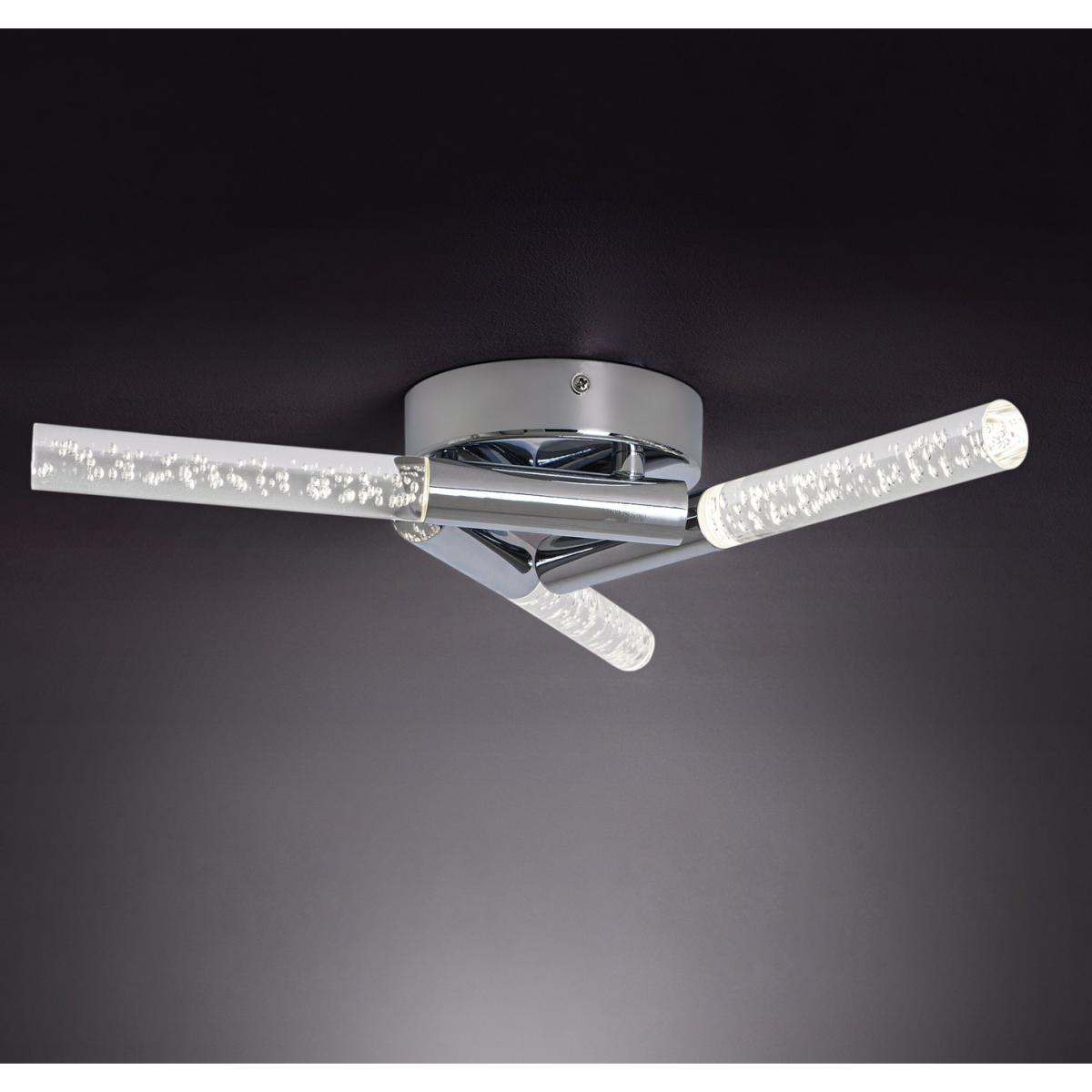 Glam it up. This elegant glass and chrome light sits flush with the ceiling. Radiating chic sophistication during the day, flick the switch at night and bask in the glow of a real statement piece. Soft light bounces off the bubbles in the trio of wands. Gives a friendly, cosy, intimate vibe to modern decor.