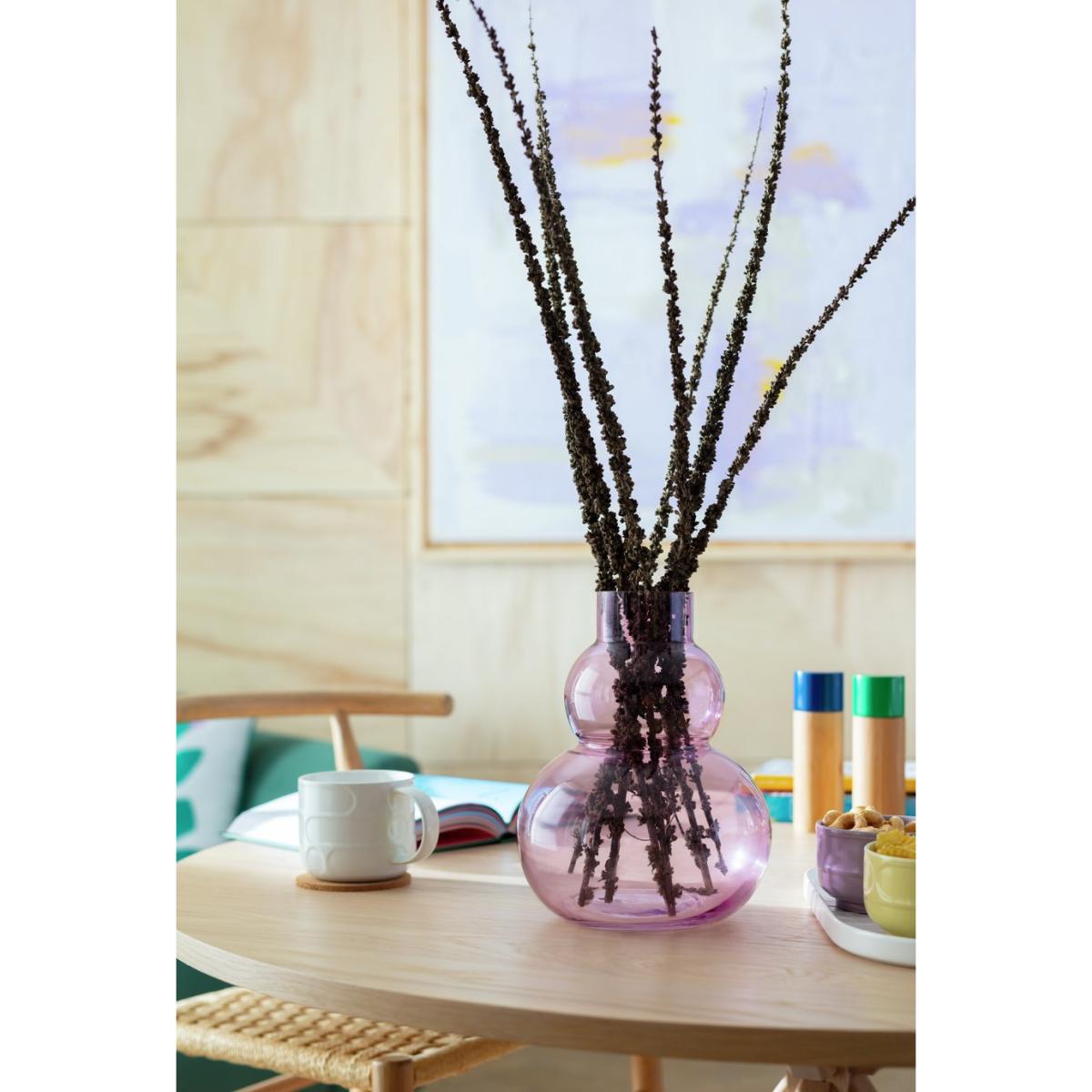 I love this bubble glass vase for its contemporary shape and subtle lilac hue, which adds a touch of softness to modern and eclectic interiors alike. It works well in minimalist settings when paired with fresh, simple stems or dried botanicals for a delicate pop of colour, and it can also be styled as a statement piece on its own. Practical tips include pairing it with a few sprigs of greenery or seasonal flowers to refresh a table or shelf, and because of its rounded shape, it’s perfect for creating centrepieces or grouping with other vases for visual interest. Its versatile colour and shape make it suitable for both everyday use and special displays in living rooms, bedrooms or even bathrooms.