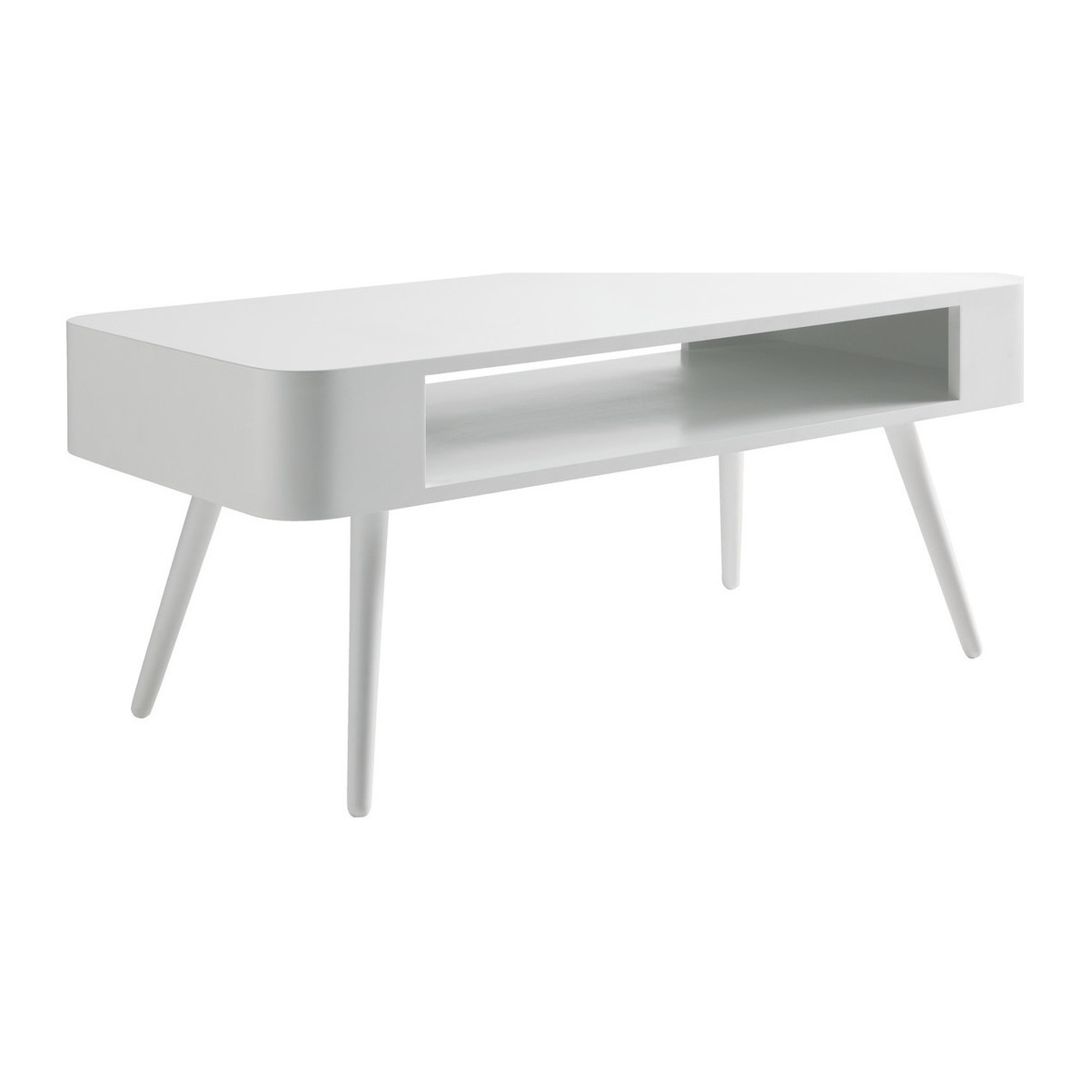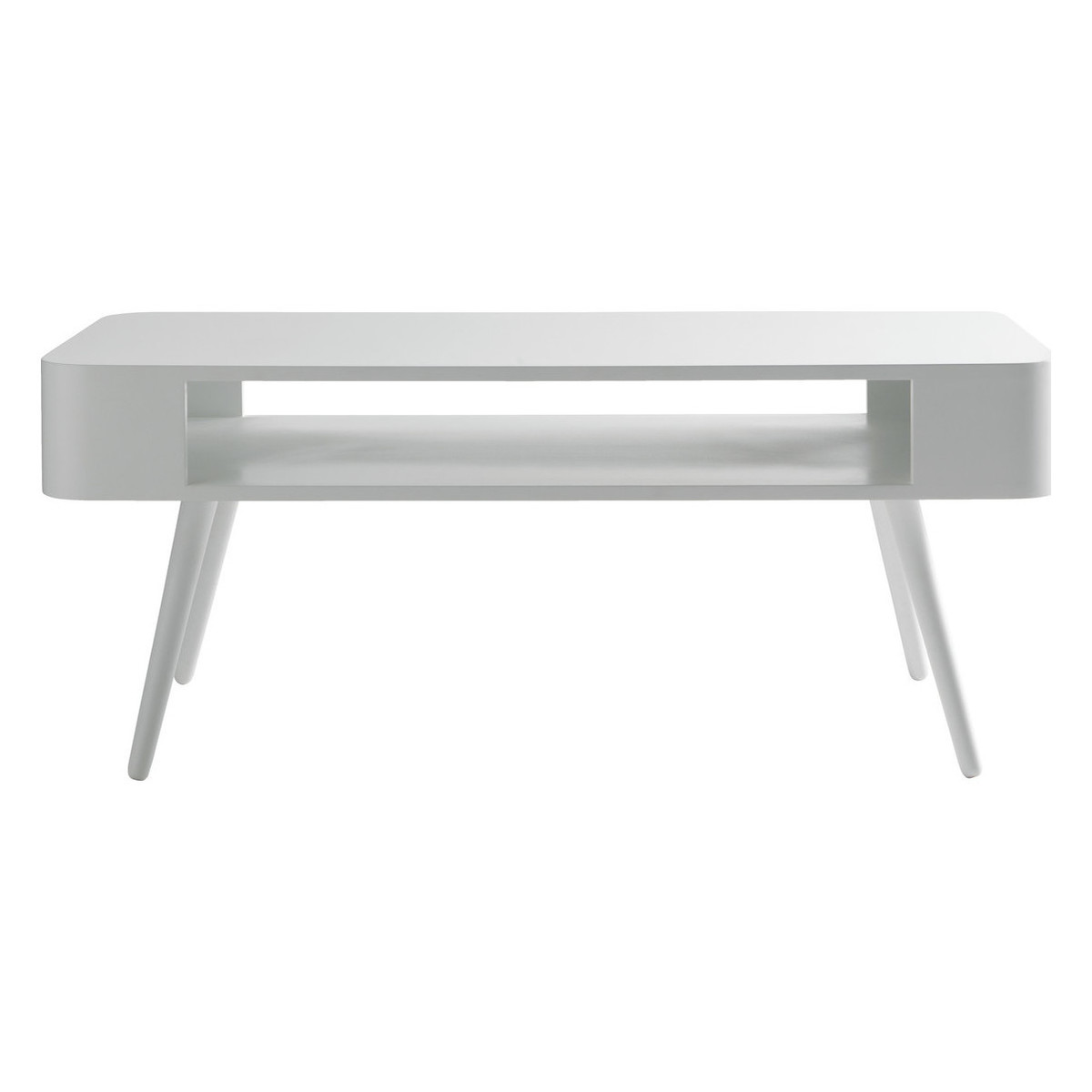 The versatile Bumble white coffee table combines contemporary clean lines with soft curves and can also be used as an AV unit. Exclusive to Habitat, the lacquered table has elegant tapered legs and a slimline shape that is perfect for smaller living spaces.