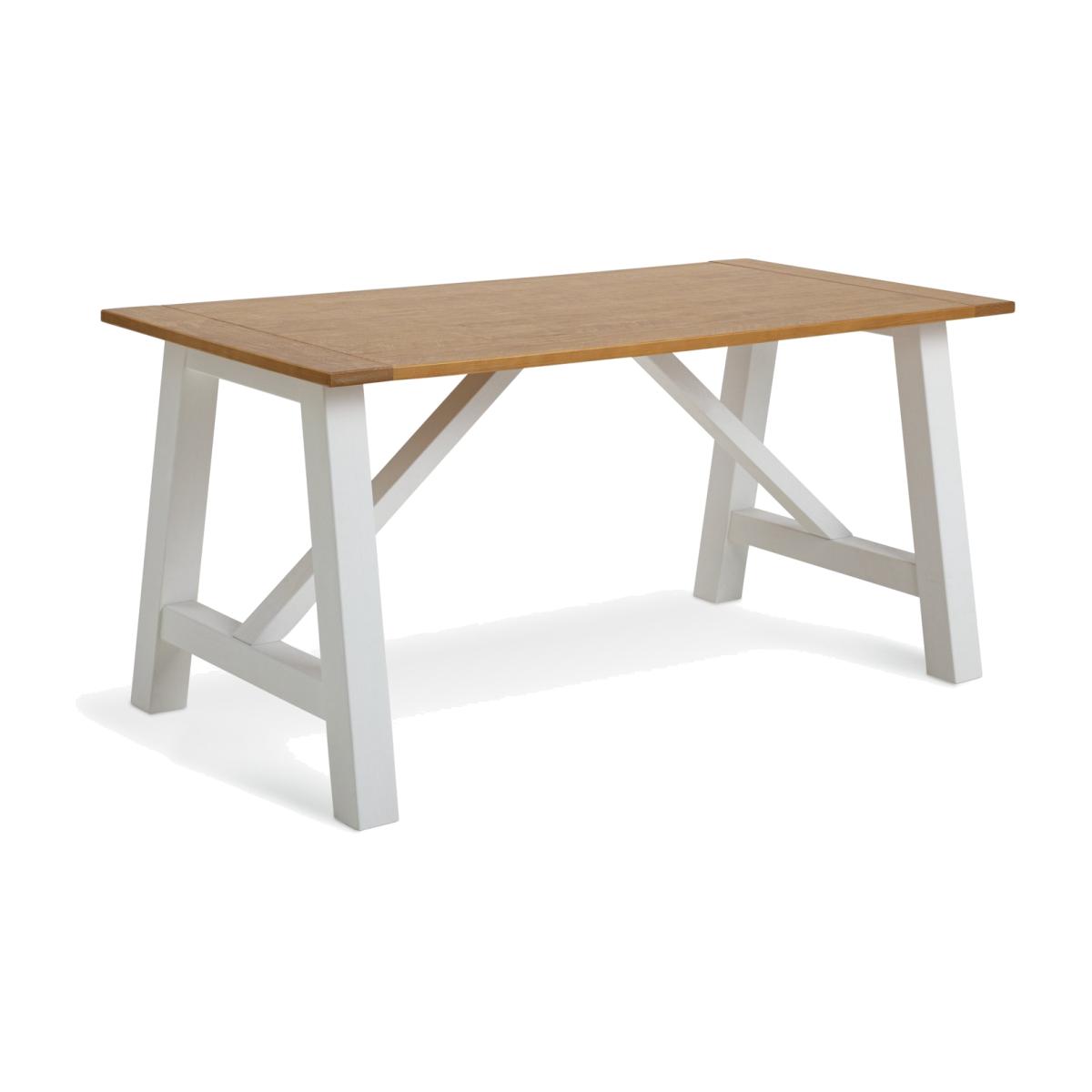 Our 4 seater dining table is a fine example of modern country cool. It's all about the solid wood top with its natural grain contrasting with the fresh painted base. A family friendly table that creates a warm welcome. Pick out some matching wooden chairs to complete the inviting country kitchen feel. Part of the Burford collection. Table: Table size: H75, L160, W80cm. Internal size between table legs L122, W58cm. Solid wood table with solid wood legs. Solid wood table top finish. Self-assembly - 2 people recommended. Weight of table 35kg. Package Dimensions: Table packaging size: H14, W171, D87cm. General information: We are excited to be welcoming some of our favourite HOME products into the Habitat range. Your product may arrive in Habitat or HOME packaging. Manufacturer's 1 year guarantee. FSC certified meaning the materials used for this product are responsibly sourced.