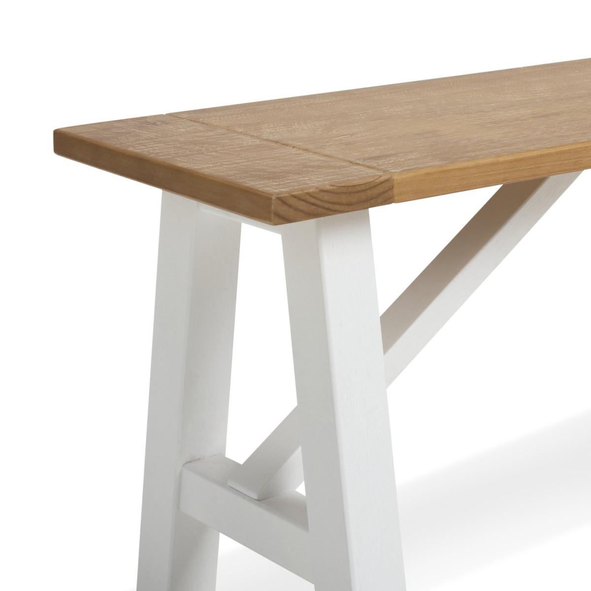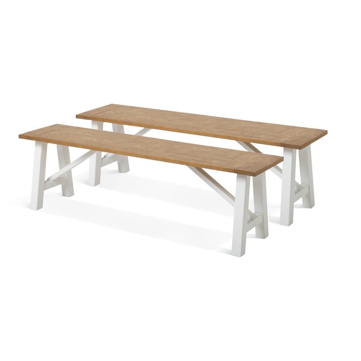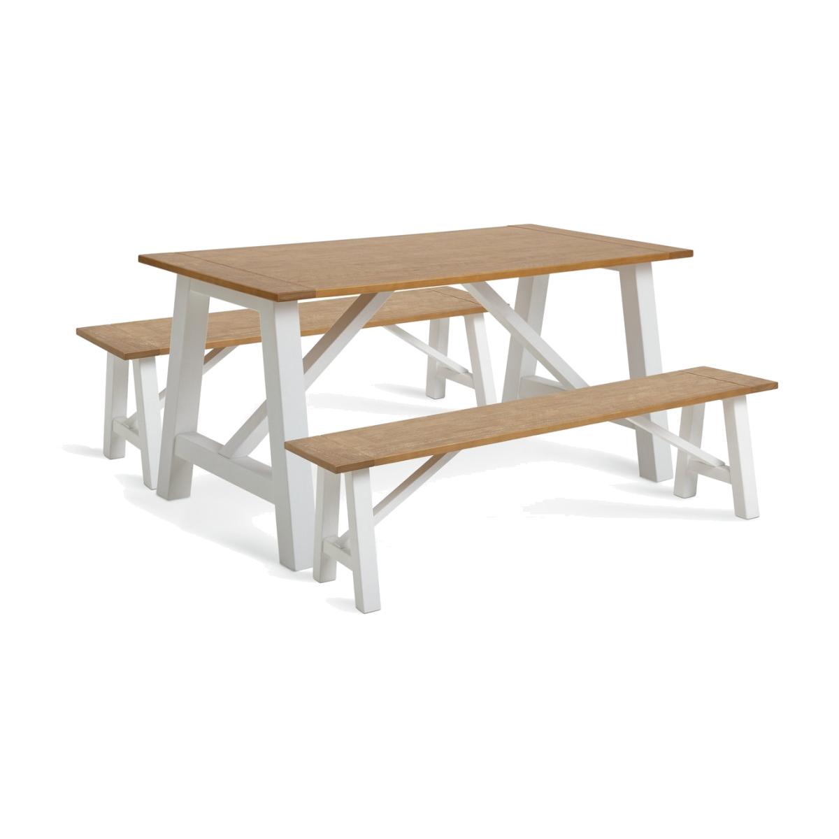 Our Burford dining set is a fine example of modern country cool. It's all about the solid wood top with its natural grain contrasting with the fresh white painted base. Casual dining at its best. Want to set the table in style? We've plenty of smart tableware for you to choose from. Part of the Burford collection. Table: Table size H75, W80, L160cm. Solid wood table with solid wood legs. Solid wood table top finish. Self-assembly - 1 person recommended. Chair: Seat height 42.6cm. Bench: Includes 2 benches. Bench size H45, W160, D35cm. Solid wood finish. Self-assembly. Bench weight 12kg. Package Dimensions: Table package 1 size H14, W171, D87cm. General information: We are excited to be welcoming some of our favourite HOME products into the Habitat range. Your product may arrive in Habitat or HOME packaging. Wipe clean with a soft cloth.